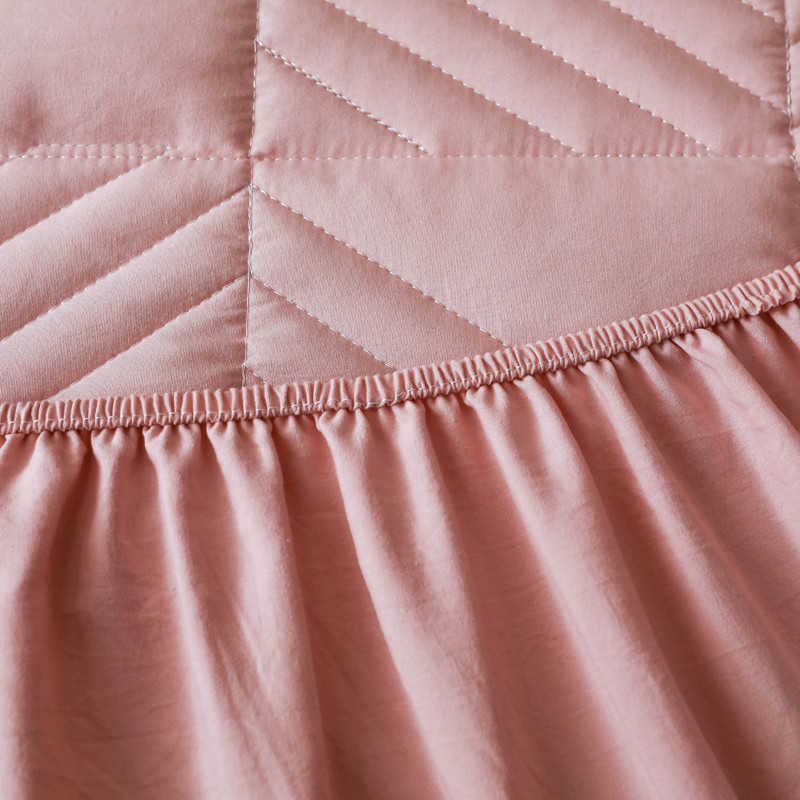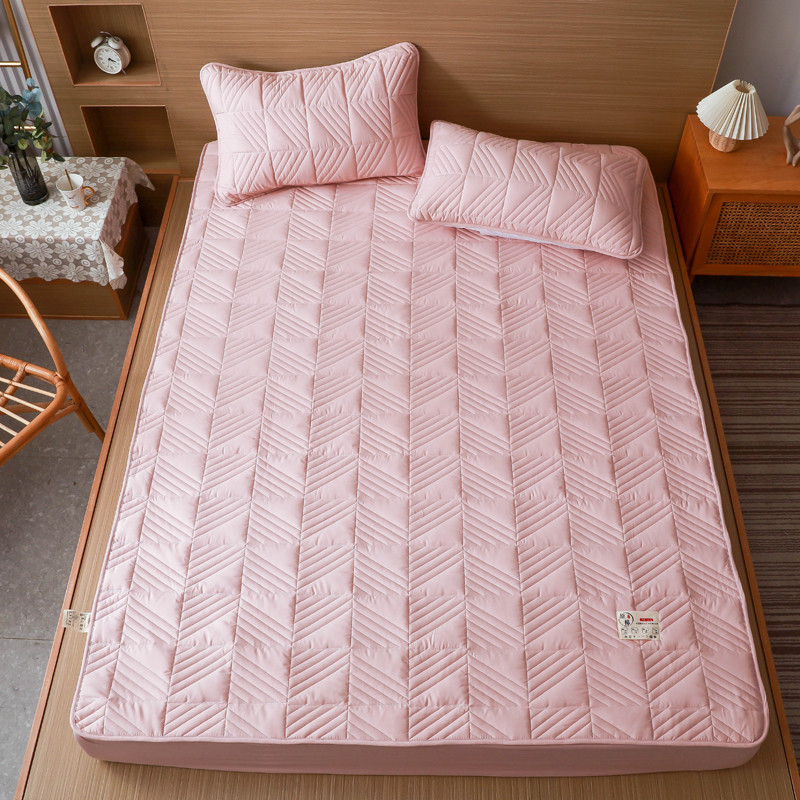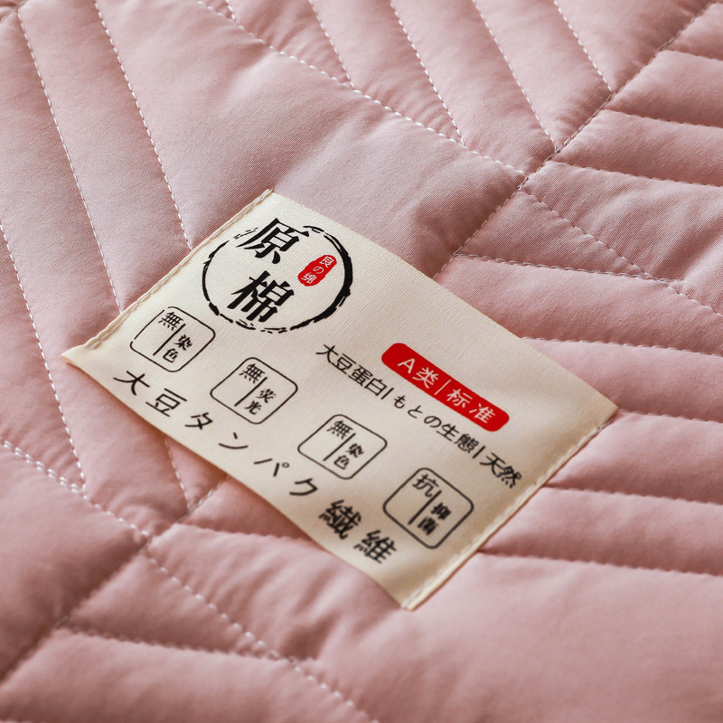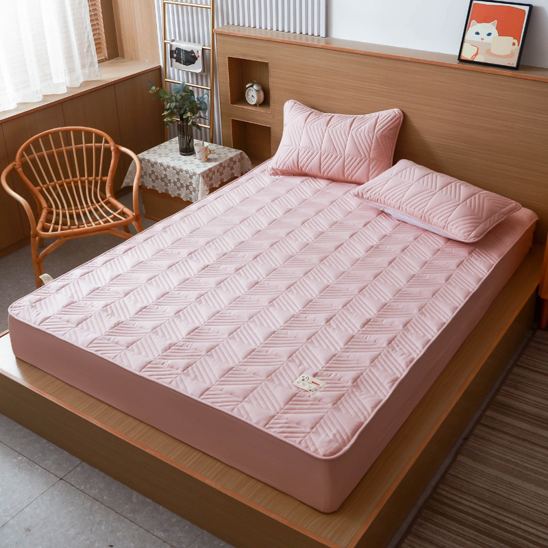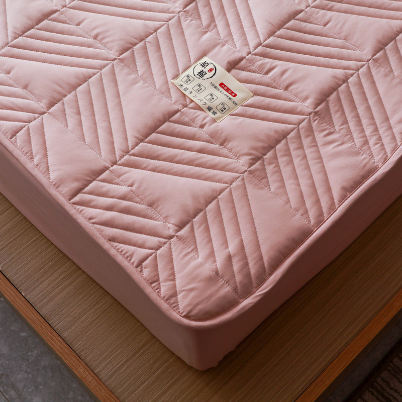A类本色原棉夹棉床笠大豆纤维床笠款 方格纹-淡粉