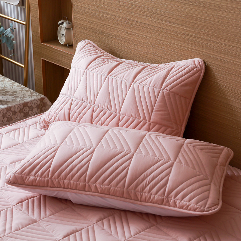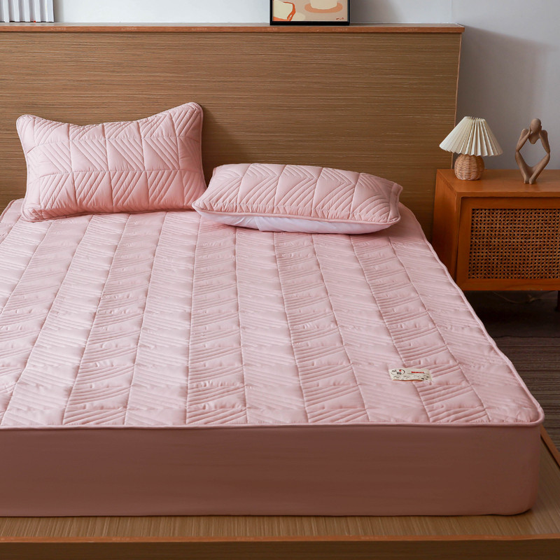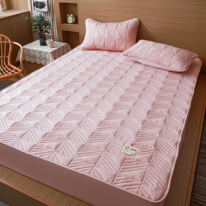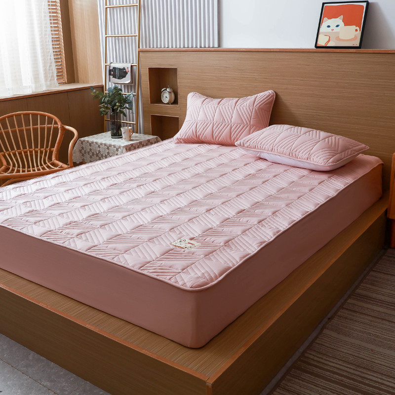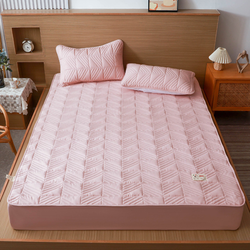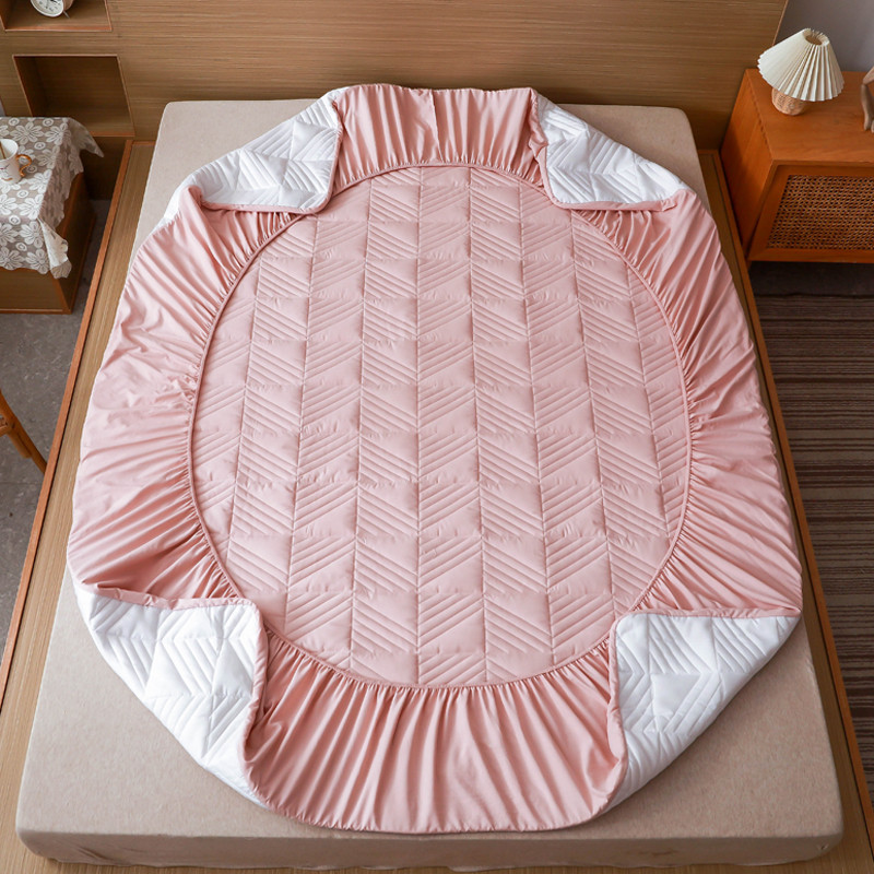 A类本色原棉夹棉床笠大豆纤维床笠款 方格纹-淡粉