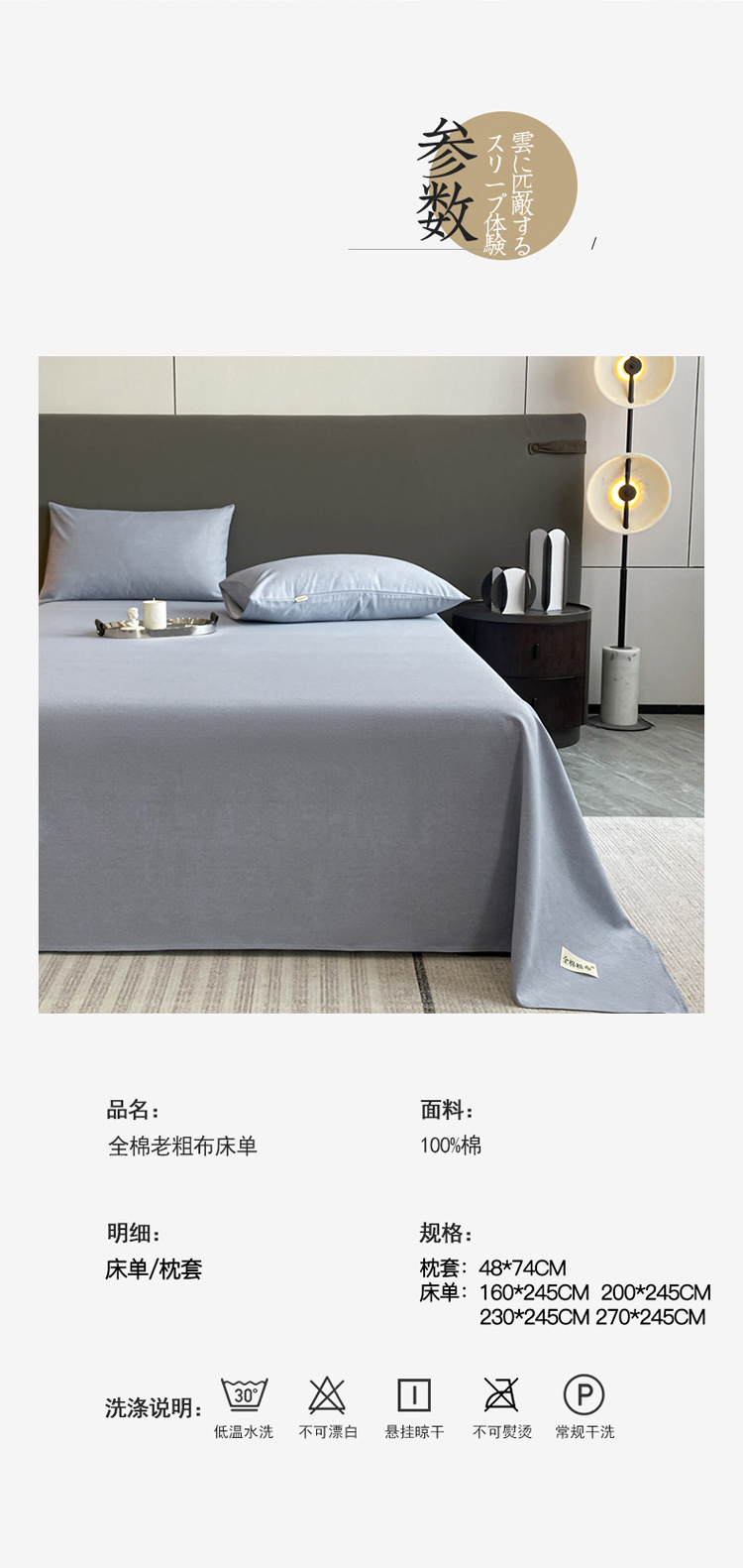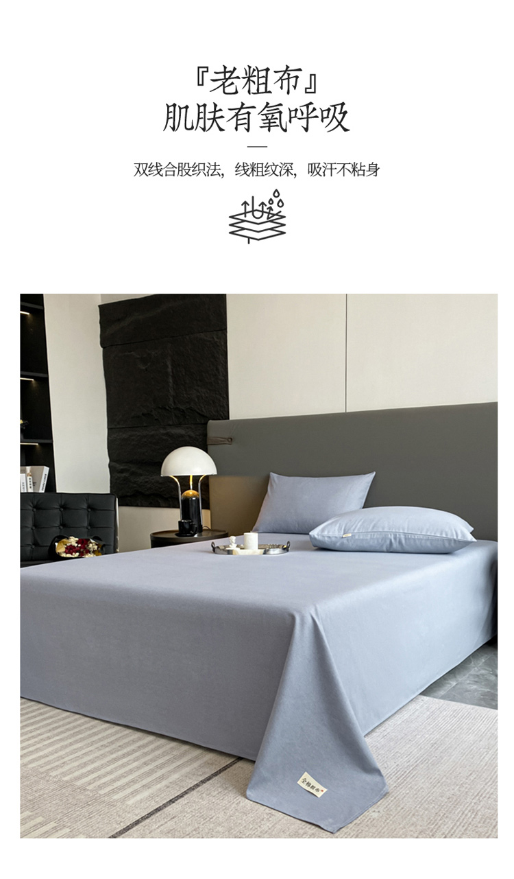 卧趣家纺 2023新款全棉老粗布单品系列单床单 月白-兰