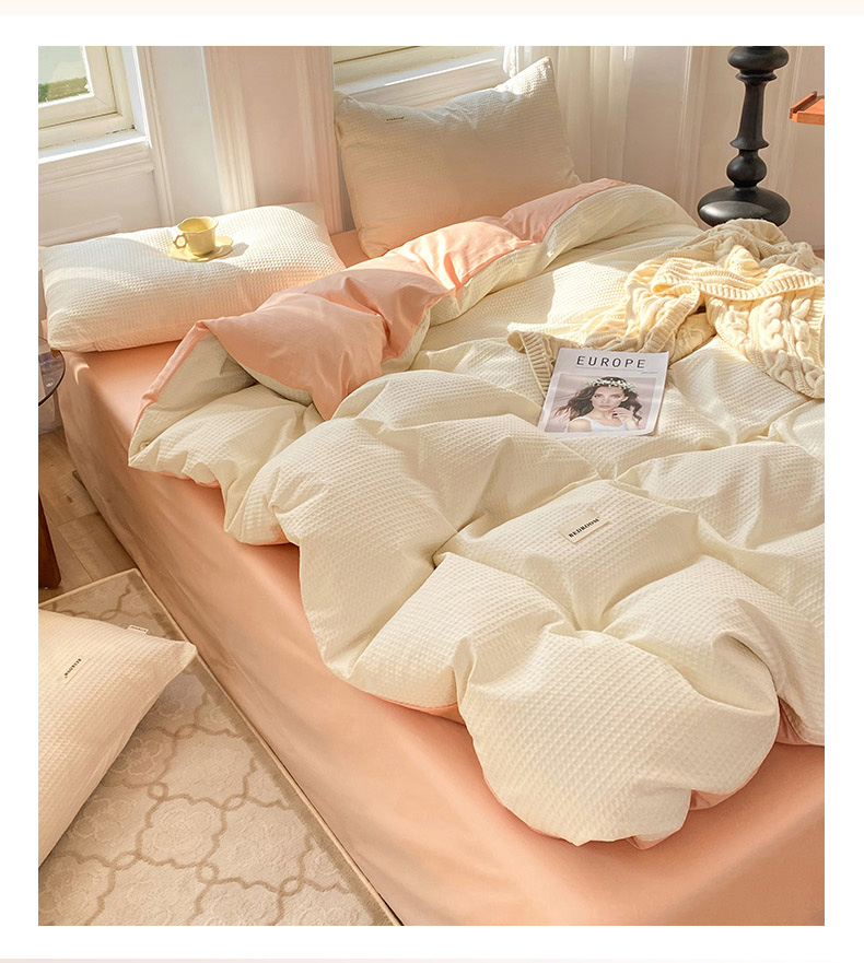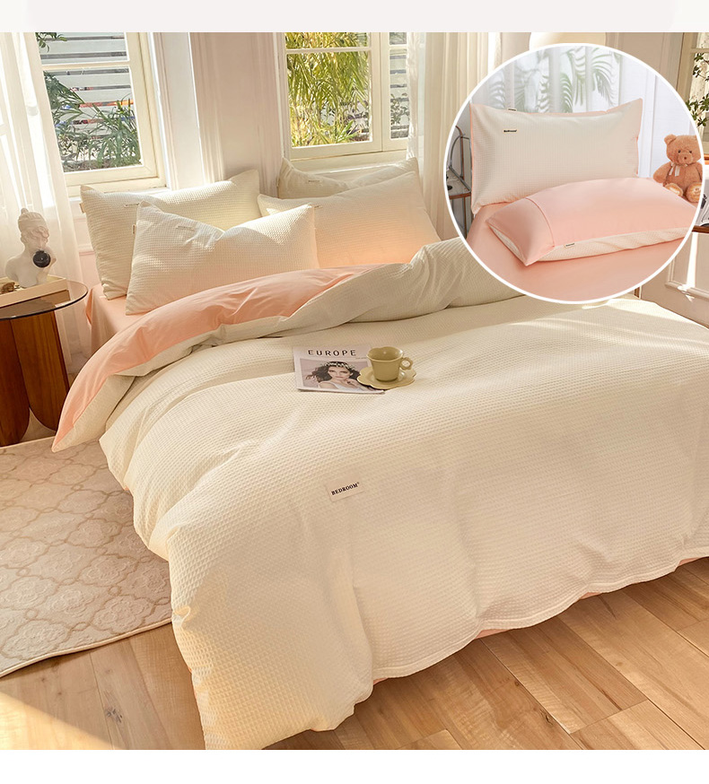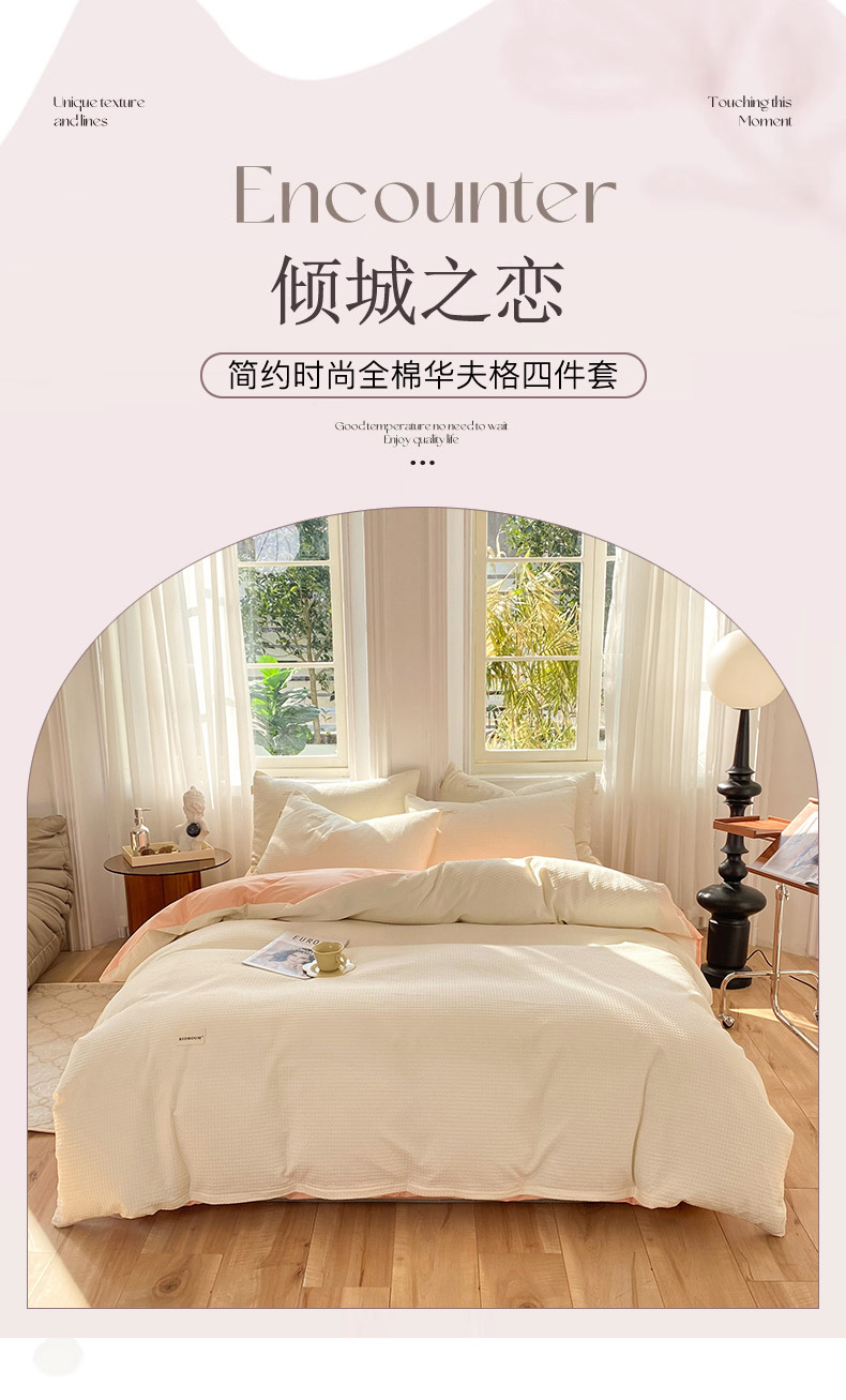 (总)眠博士 2026新款简约时尚全棉华夫格四件套(提供买家秀)