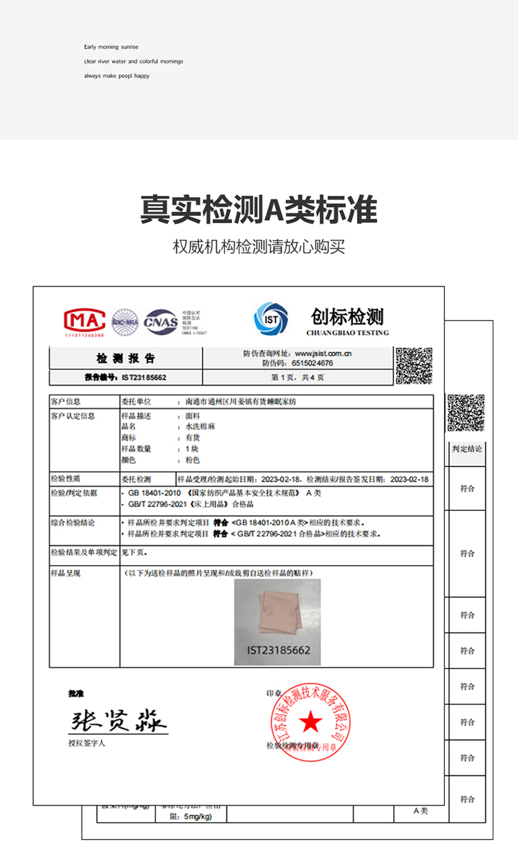 4、通州区市场监管局川姜分局友情提醒:近期针对抗静电,无静电,抗菌防螨,及有关舒适度,百分比的举报高发。为不影响商品正常销售,请各商家高度重视,自检自查及时整改,谢谢配合!