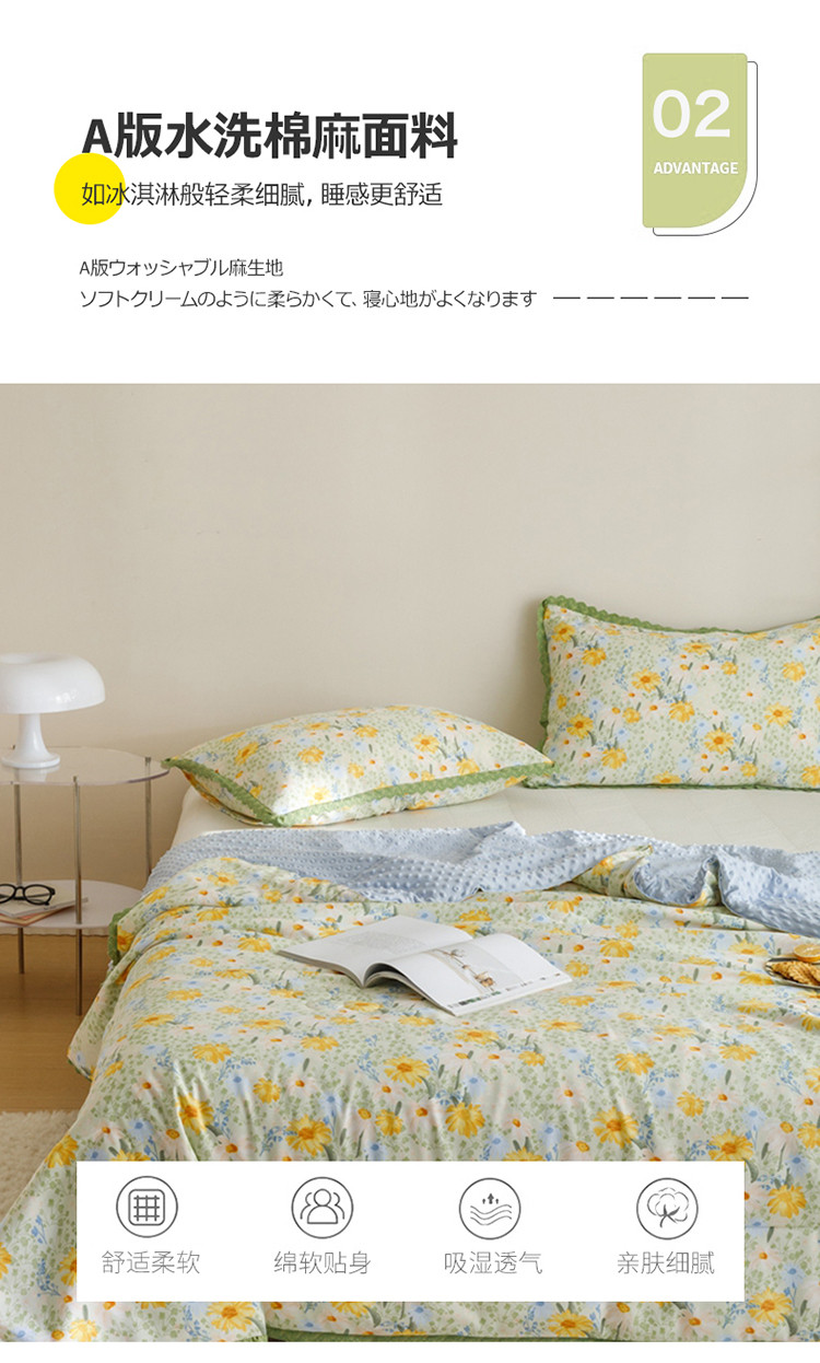 (总)有货 2023新款小清新花边韩版水洗棉麻豆豆夏被简约复古风,枫情,格格,绿野,绿意,南风,暖心,森林,盛开,太空,微笑,向阳花,小鹿,枝丫