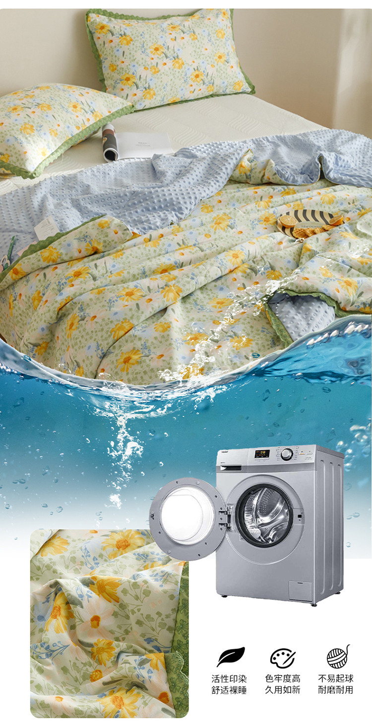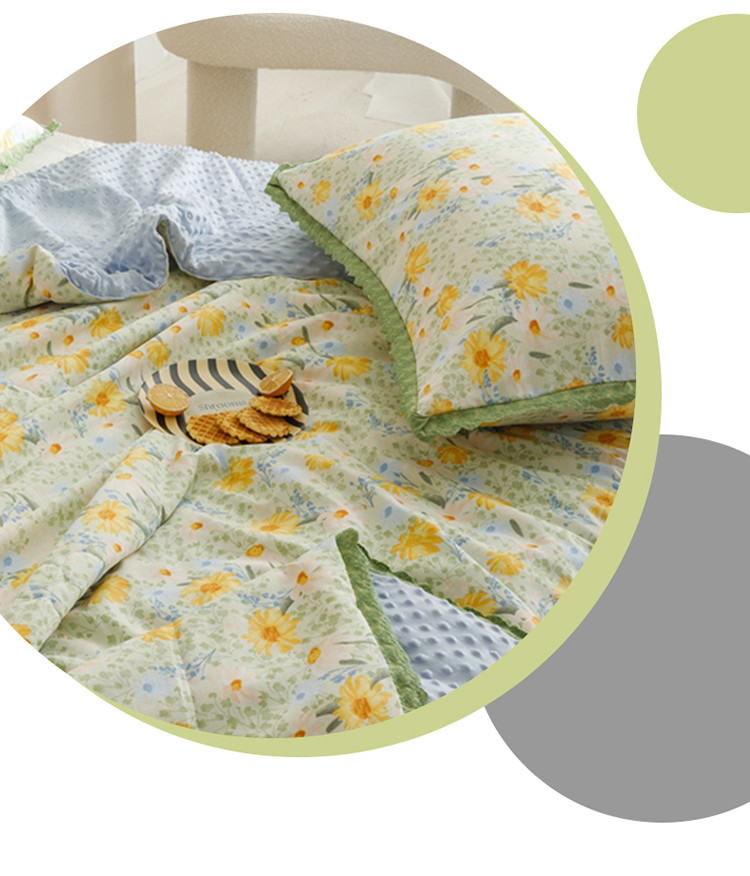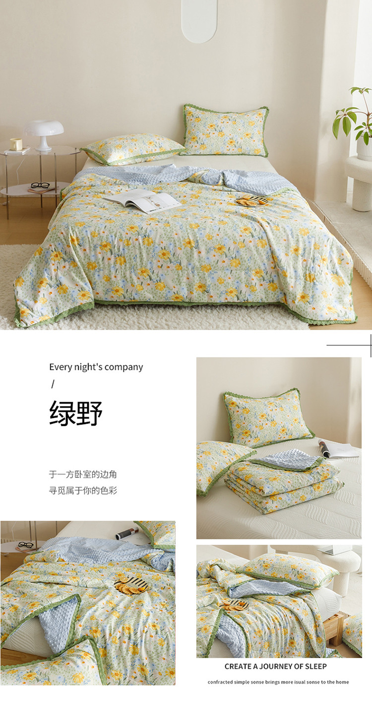 商品名称:有货 2023新款小清新花边韩版水洗棉麻豆豆夏被简约复古风 绿野