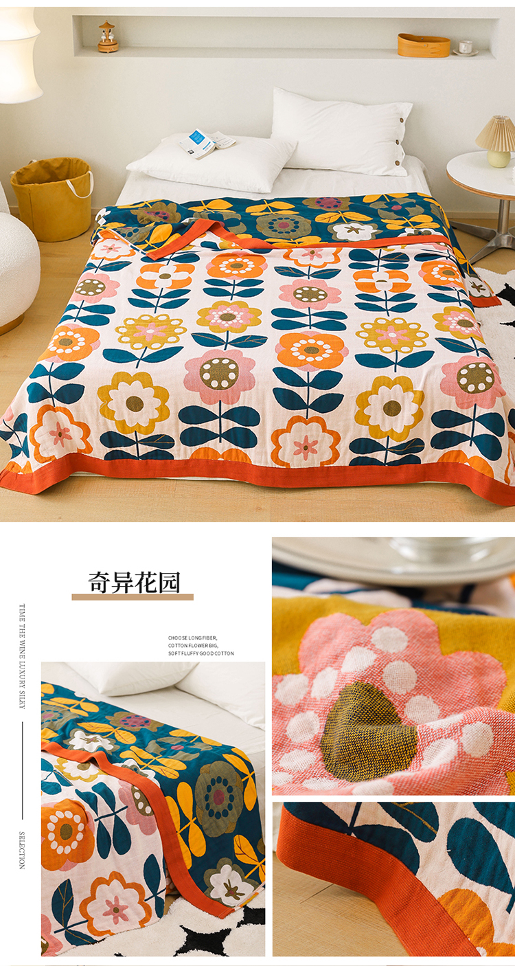 商品名称:朴尔 2023年新款调皮风宽边加厚透气全棉四层纱布毛巾被 奇异花园