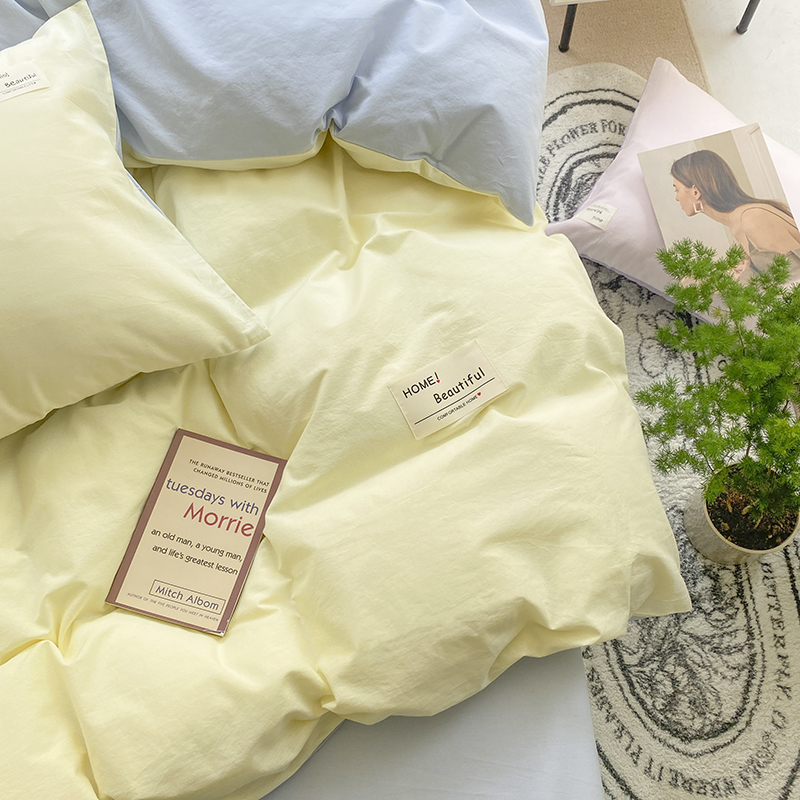 商品名称:寐居 2023新款全棉水洗棉双拼色纯色单被套 米黄+浅蓝