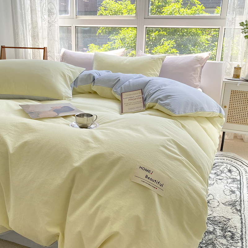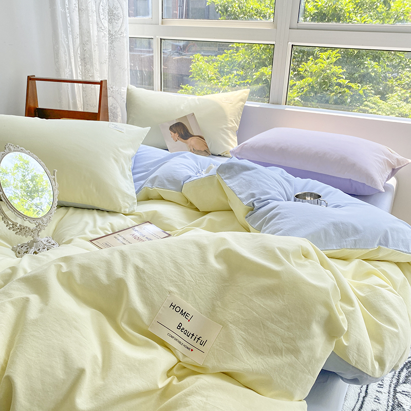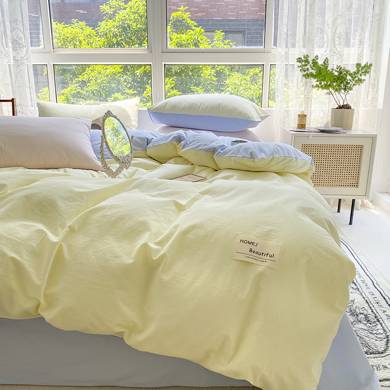 (总) 寐居 2023新款双拼全棉水洗棉纯色四件套,ins风-草绿色,ins风-湖绿色,ins风-裸粉色,ins风-迷雾蓝,ins风-奶油黄,ins风-柠檬黄,ins风-樱花粉,鹅黄+香芋紫,焦糖+卡其,军绿+焦糖,米黄+卡其,米黄+深粉,奶油玉+鹅黄,深粉+湖蓝,深蓝+焦糖,藏青+浅灰,绿+牛油果绿,米黄+浅蓝,抹茶绿+橡木黄,奶油玉+橄榄绿,奶油玉+香芋紫,浅豆沙+浅灰,深蓝+灰