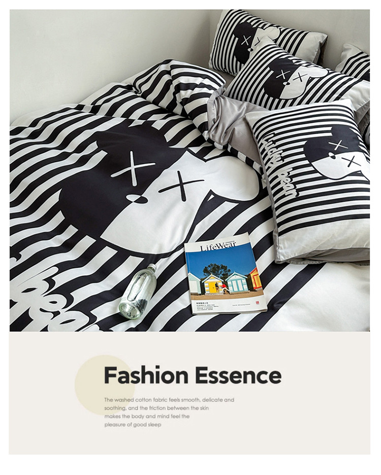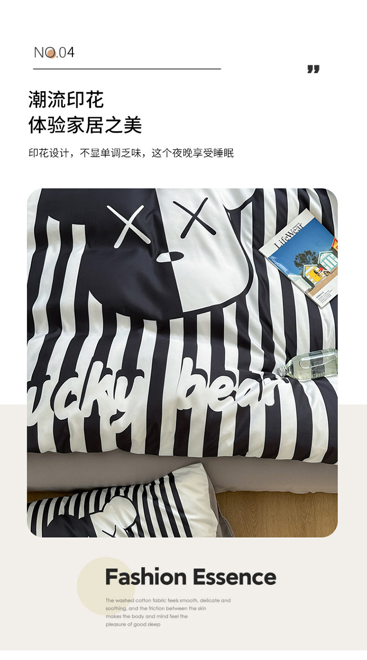 (总)摩卡(乐趣) 2025秋冬新品网红款水洗棉四季款四件套,豹纹熊-粉,豹纹熊-绿,彩虹兔,公仔蓝,梦幻粉,梦幻蓝,棋盘格公仔,太阳花粉,天使熊-粉,天使熊-咖,小熊头,熊头白,熊头橙,熊头咖,熊仔白