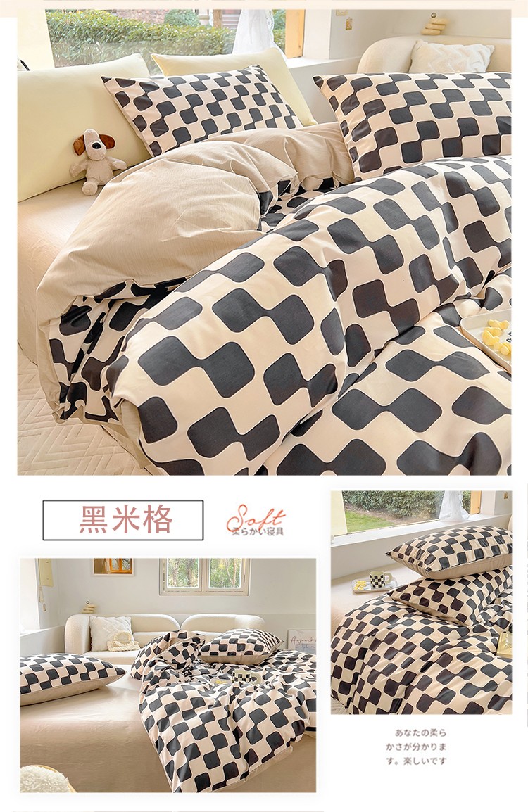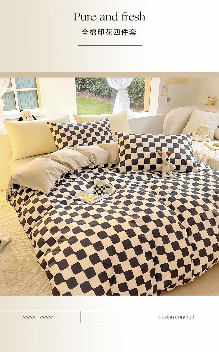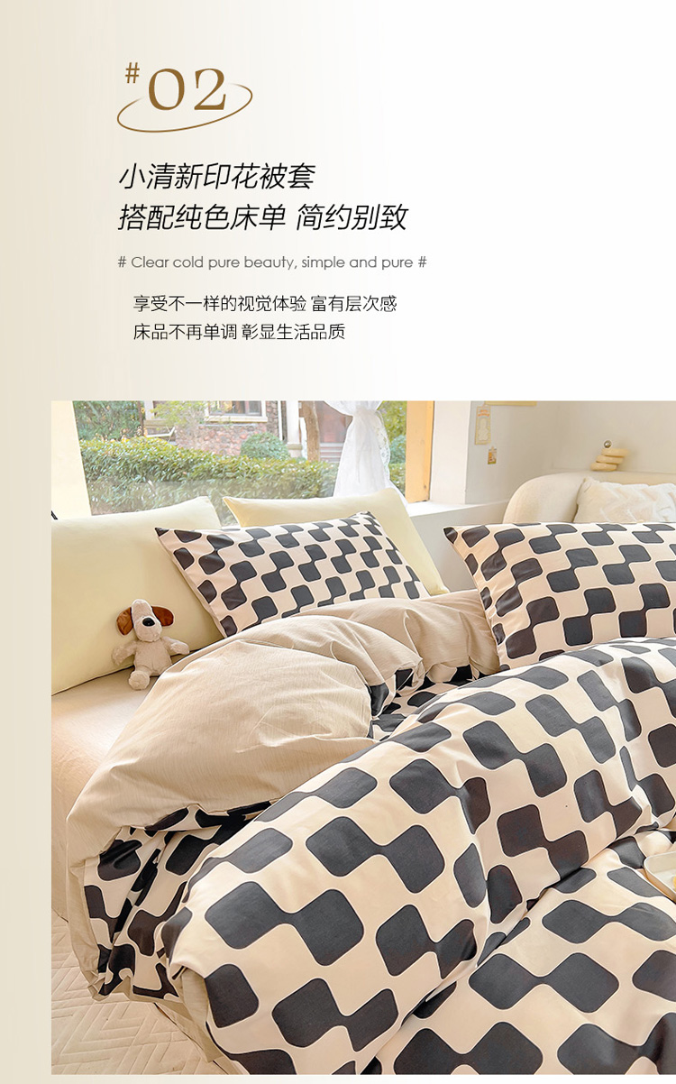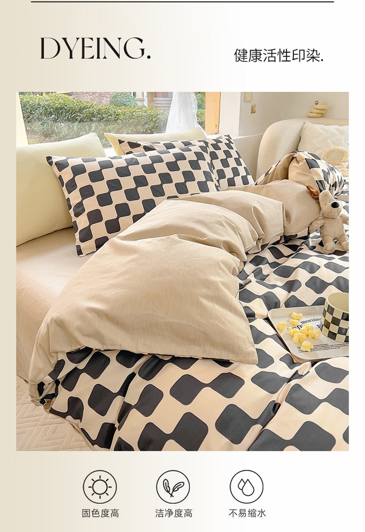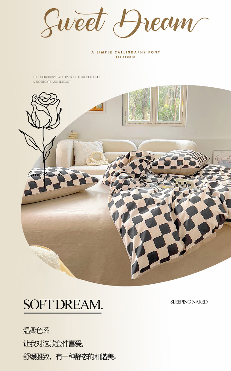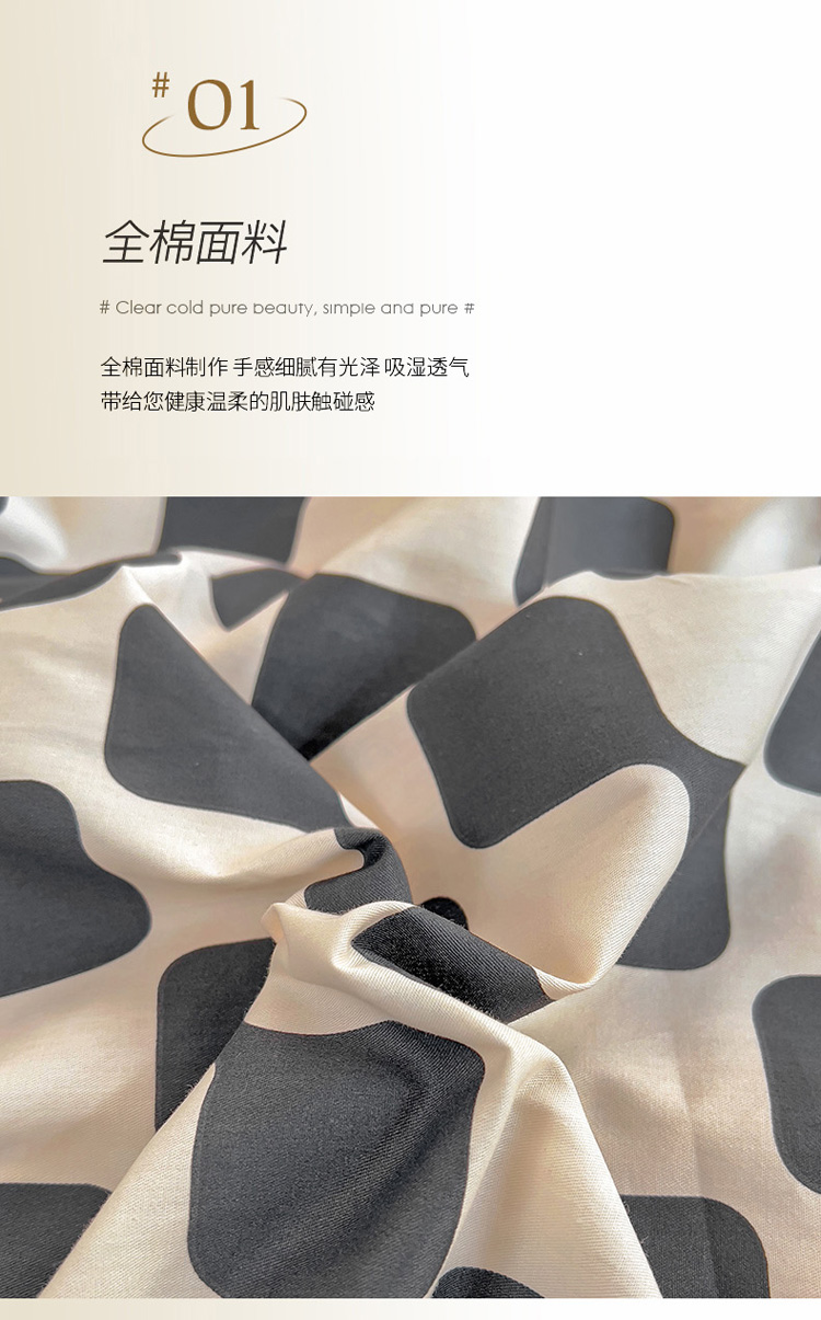 商品名称:田野 2023新款13372全棉四件套 黑米格