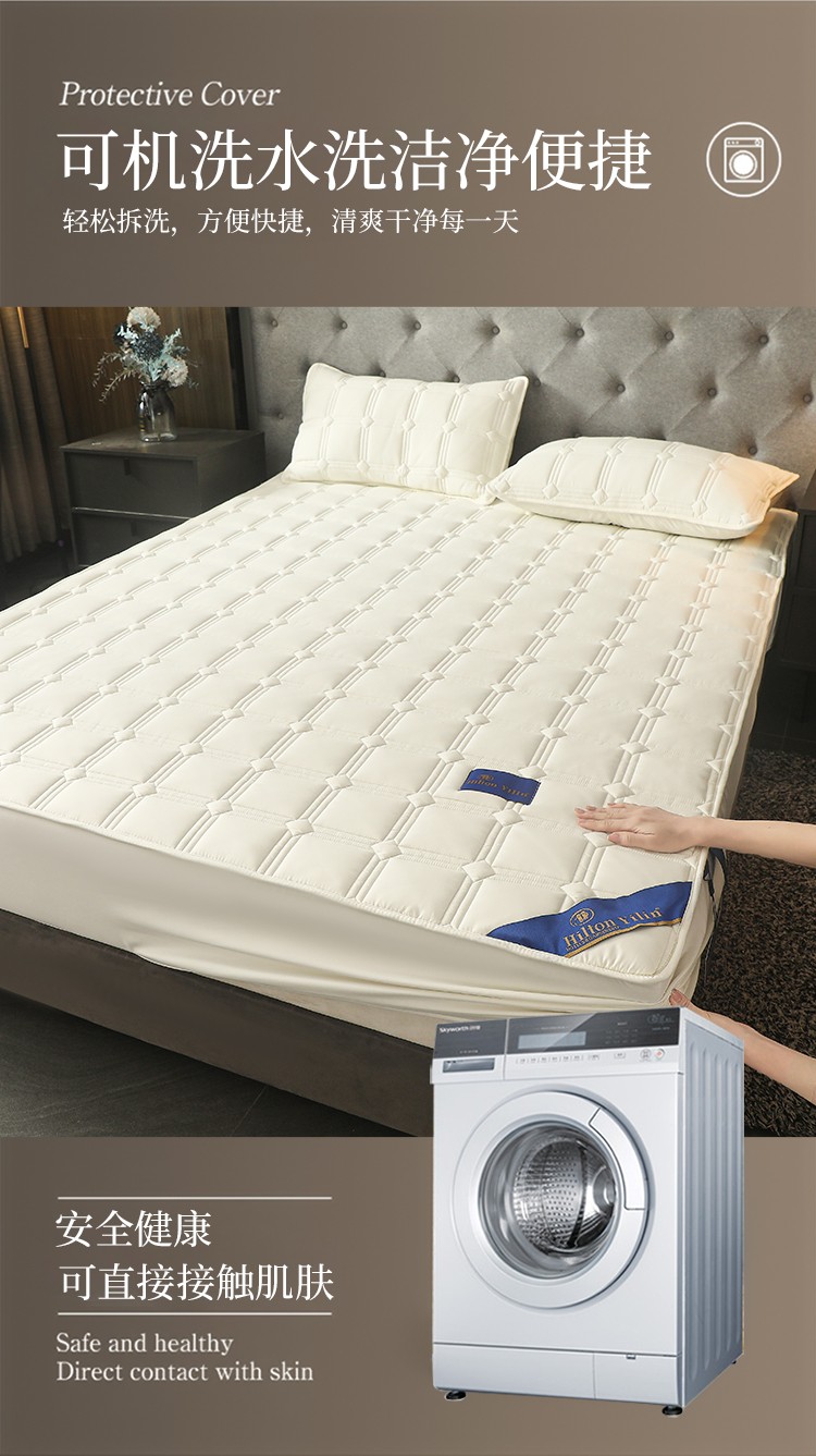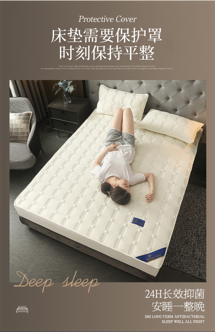 商品名称:给笠 2024新款希尔顿原棉抗菌夹棉床笠-雅格 雅格-米白