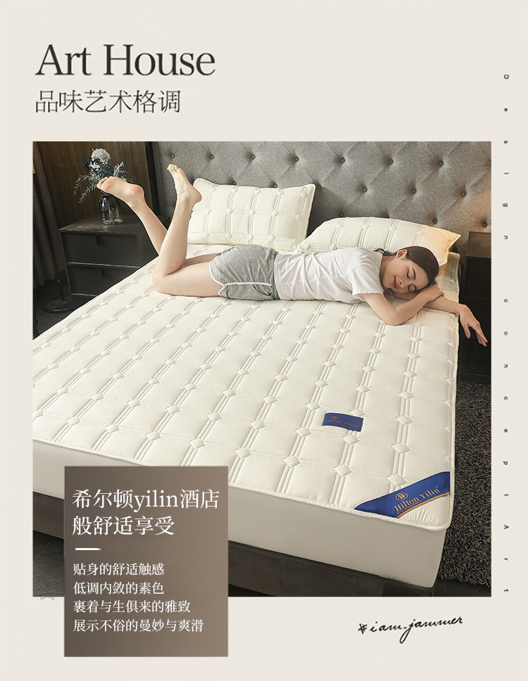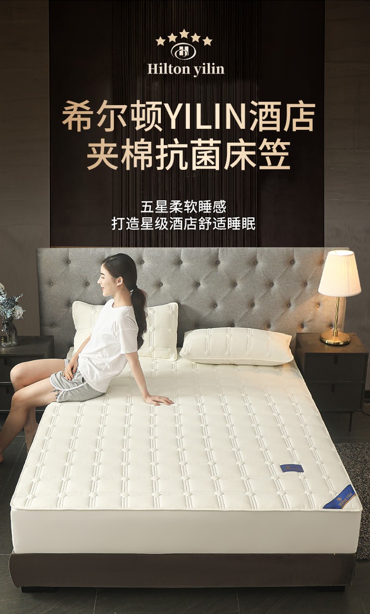 给笠 2024新款希尔顿原棉抗菌夹棉床笠-雅格 雅格-米白