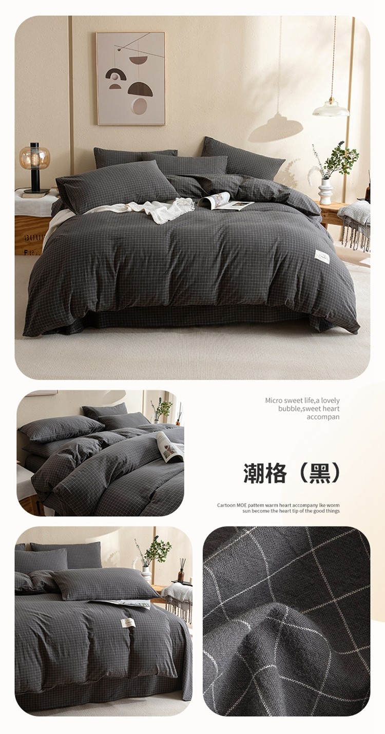 当前位置: 91家纺网 > 商品网购 > 床品套件 > 四件套 > 水洗棉四件套 > 栩裕纺织2025新款全棉水洗棉学生三件套四件套 潮格(黑)