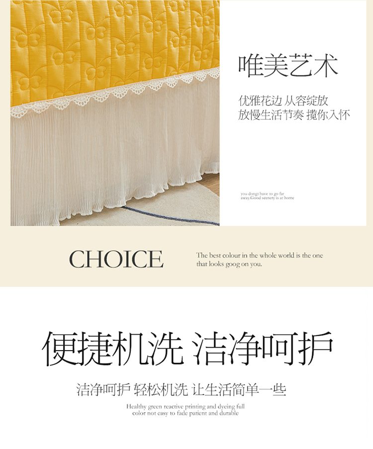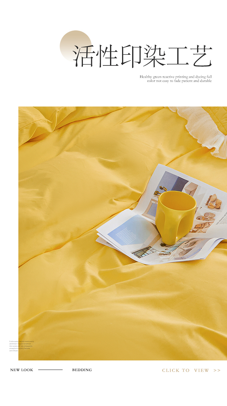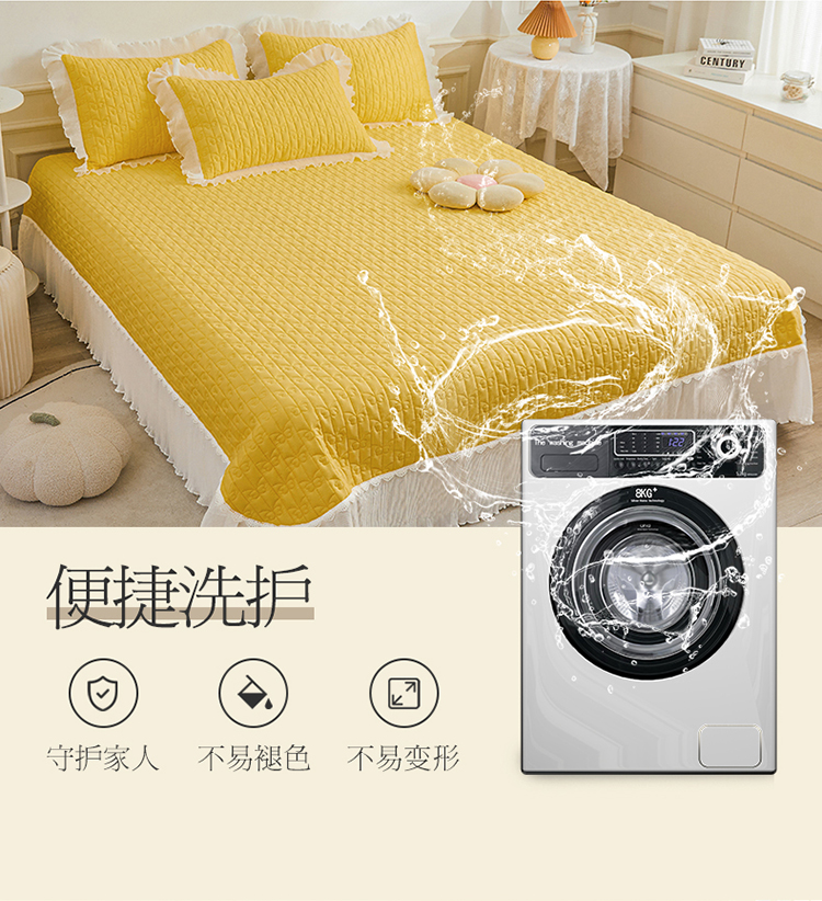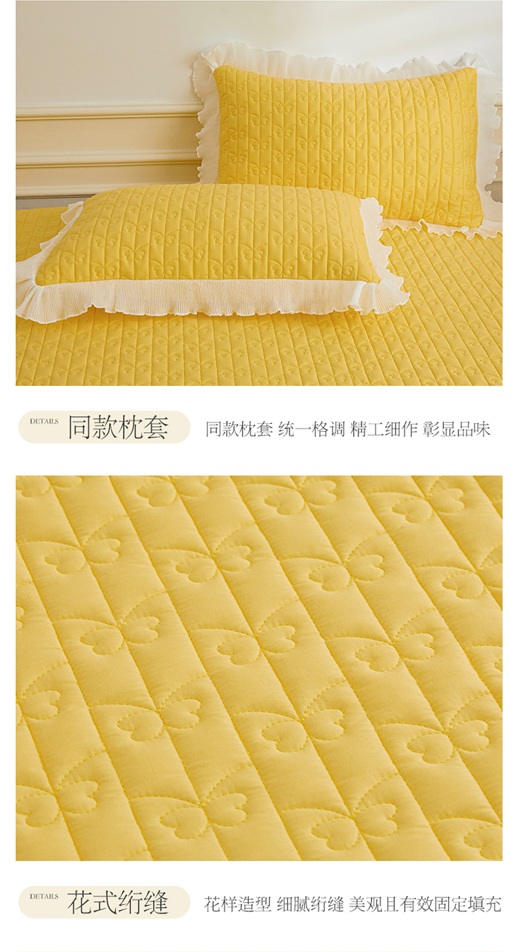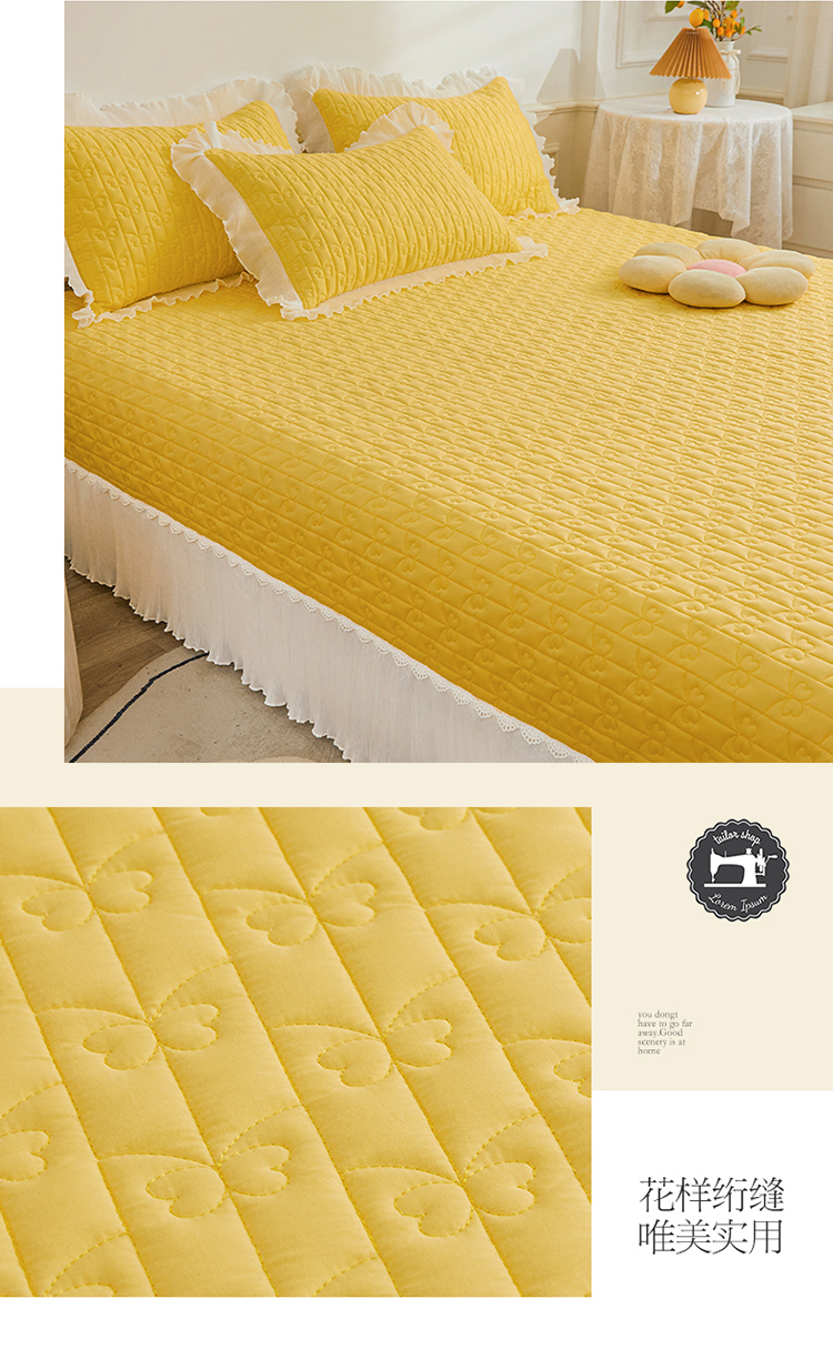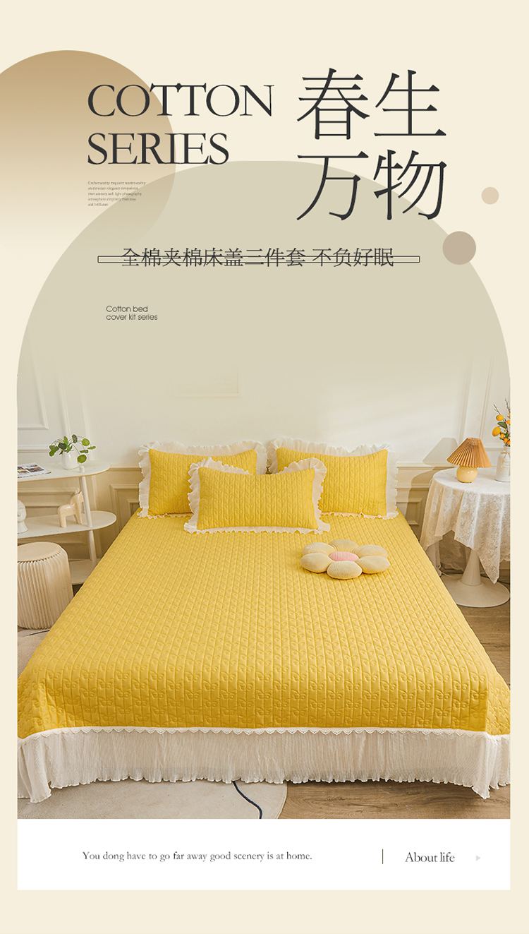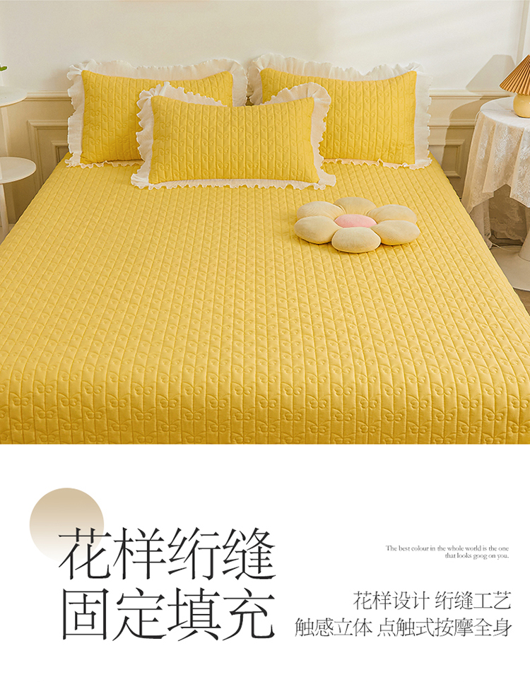 当前位置: 91家纺网 > 商品网购 > 床品套件 > 四件套 > 全棉普通四件套 > 宜凡家纺 2023新款全棉花边床盖三四件套 柠檬黄
