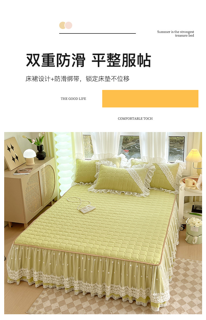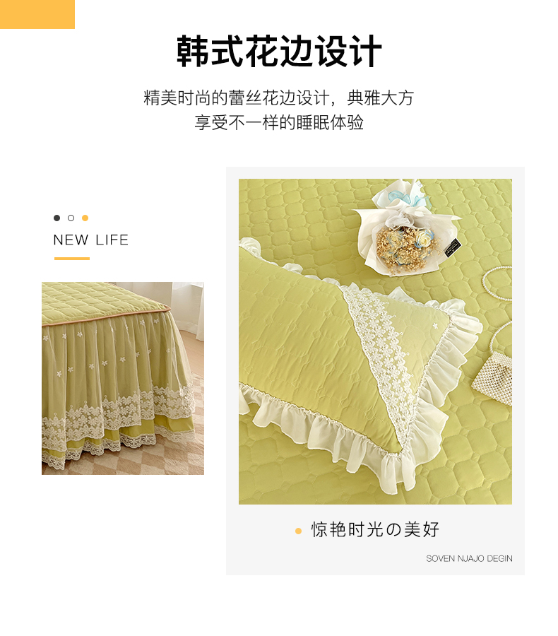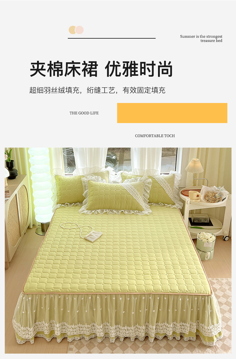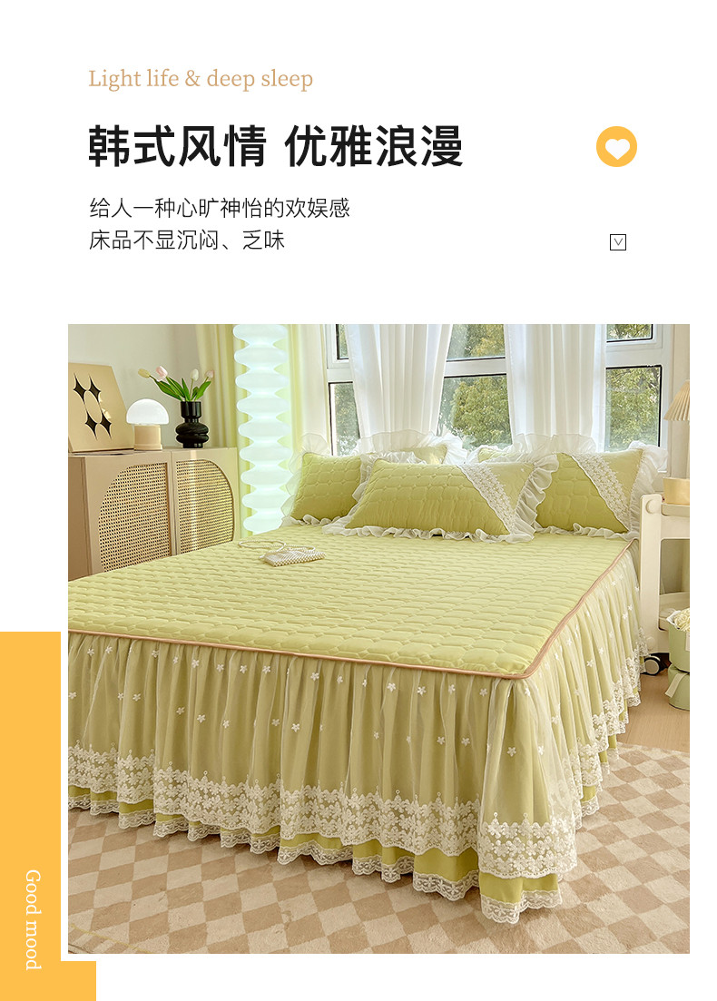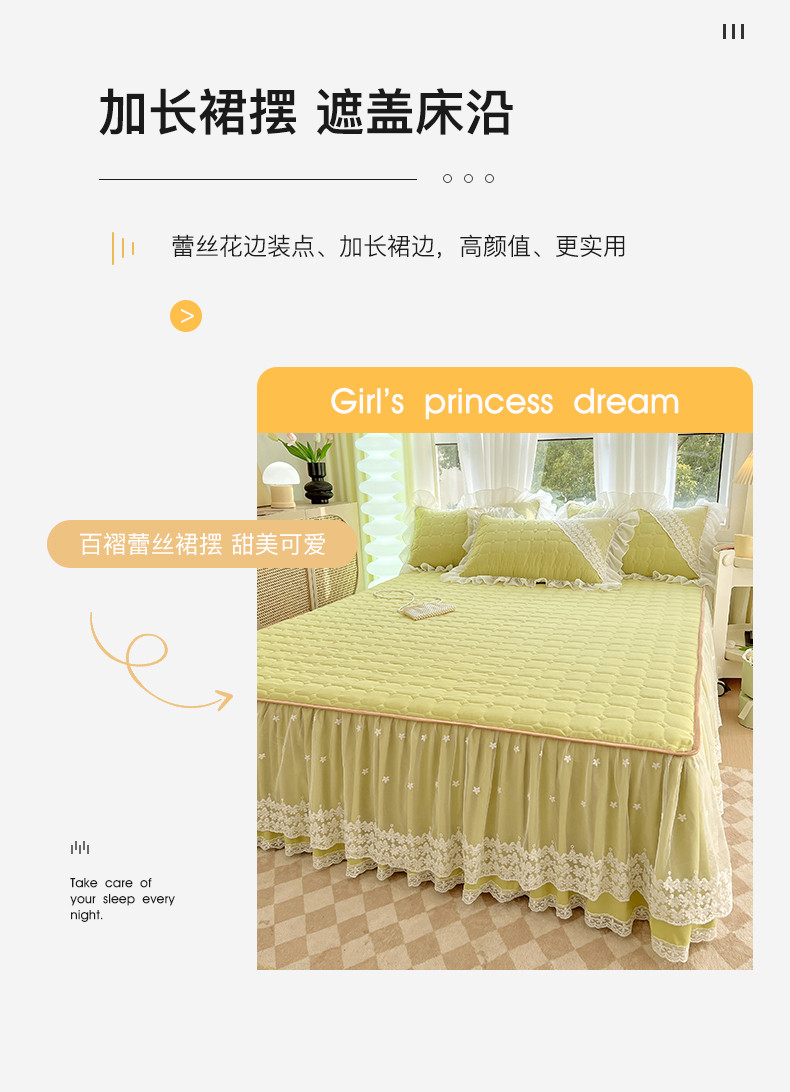 商品名称:罗艺轩 2024新款 泡泡纱夹棉床裙白雪公主系列 青草绿