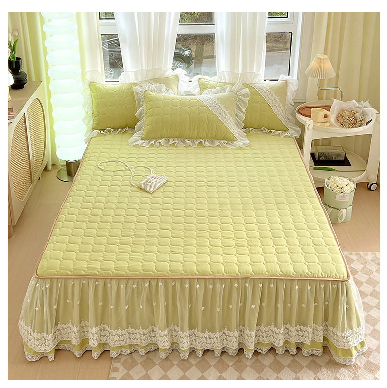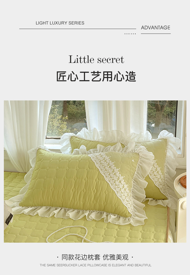 罗艺轩 2024新款 泡泡纱夹棉床裙白雪公主系列 青草绿