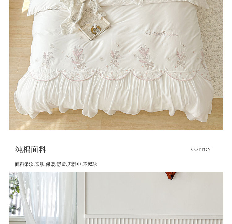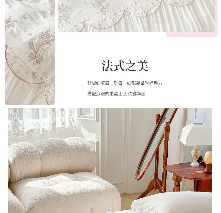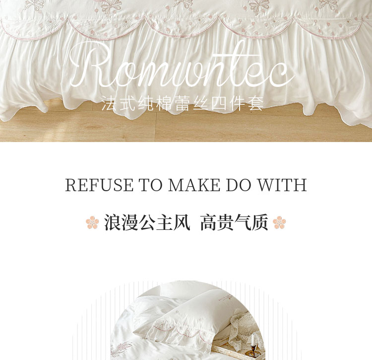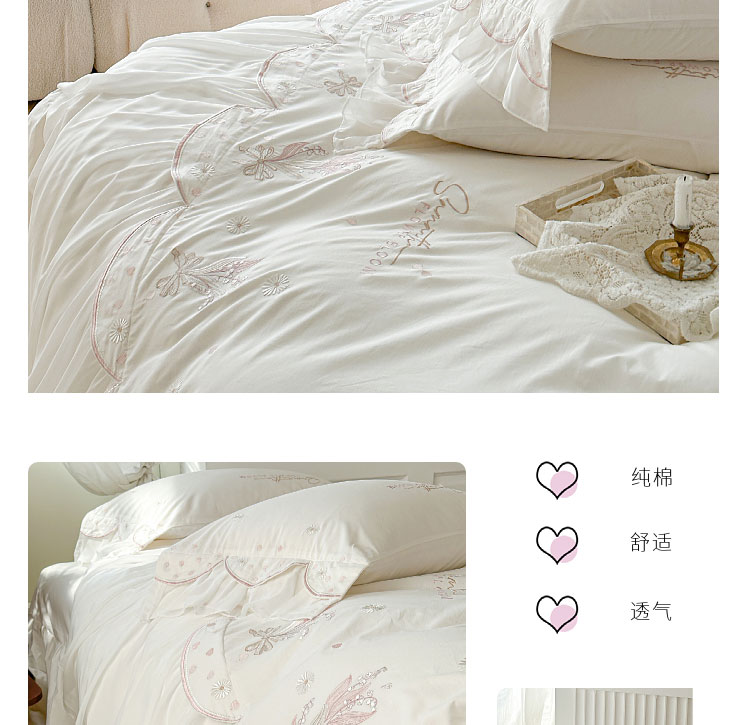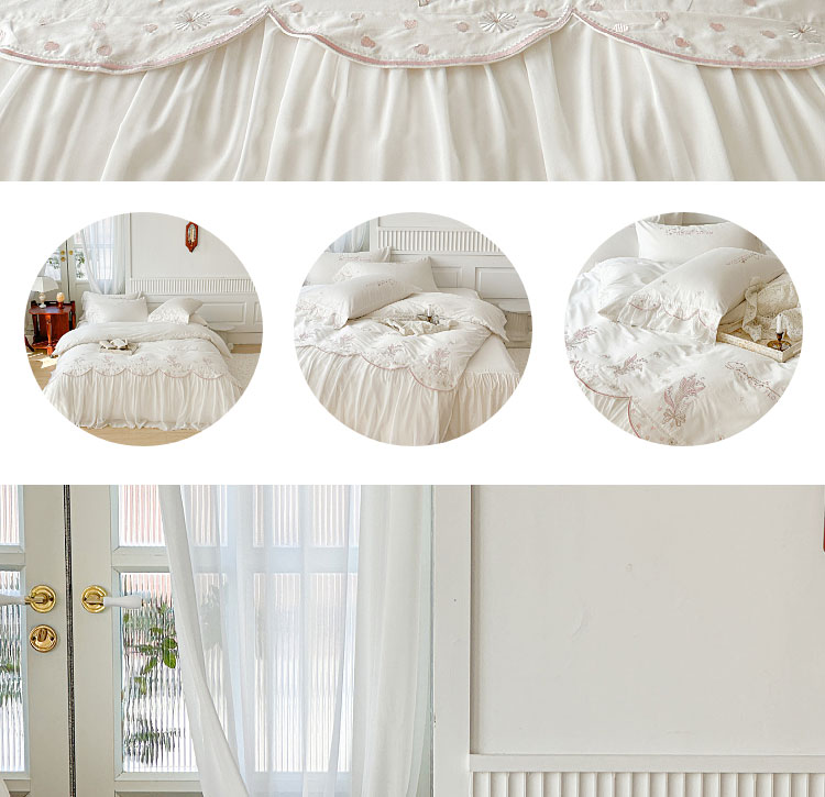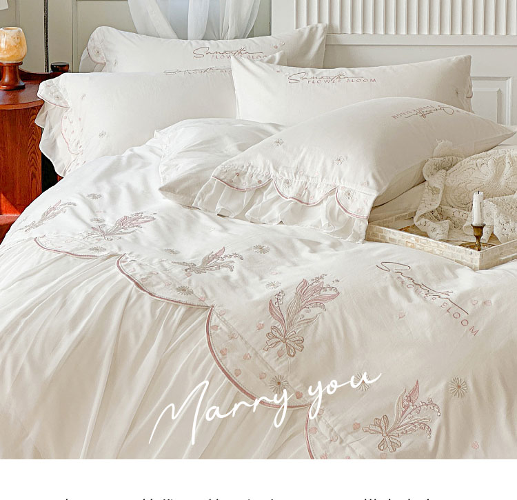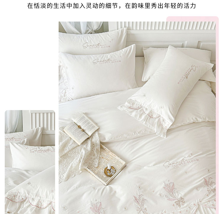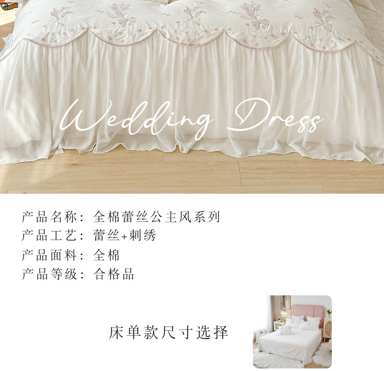当前位置: 91家纺网 > 商品网购 > 床品套件 > 四件套 > 全棉普通四件套 > 亲亲公主2025新款全棉蕾丝公主风铃兰花开四件套 铃兰花开白色