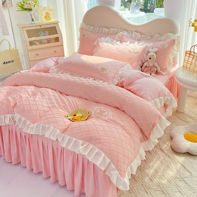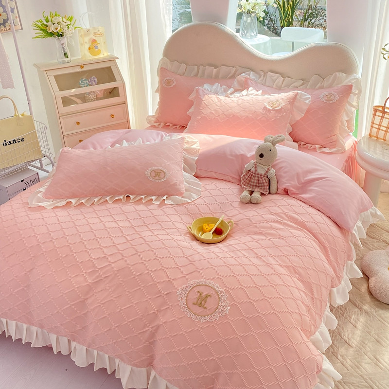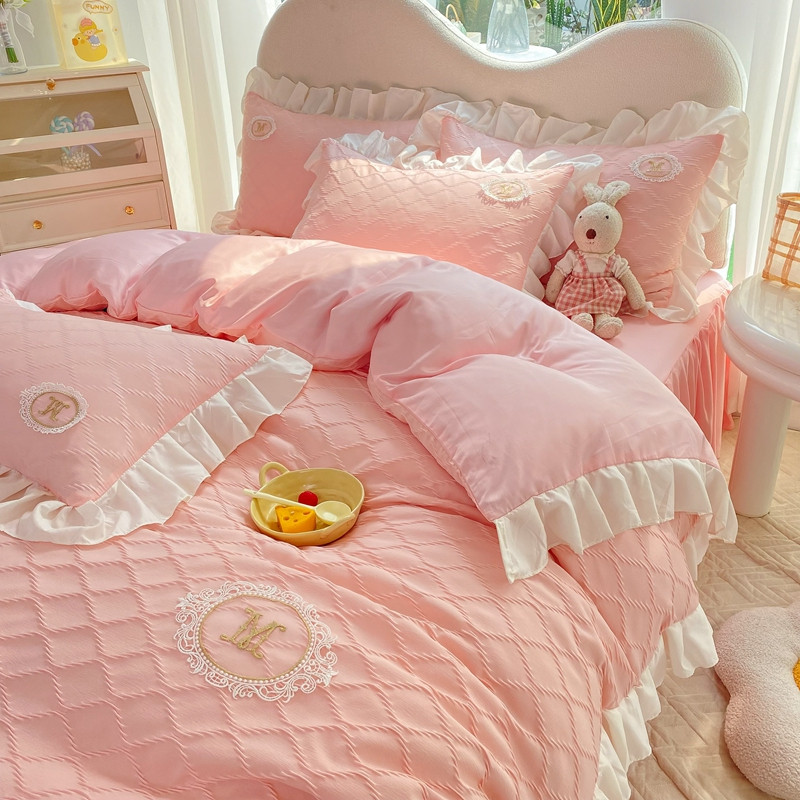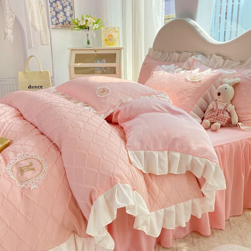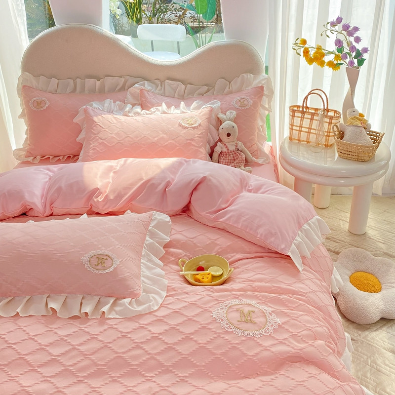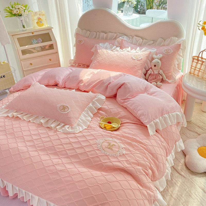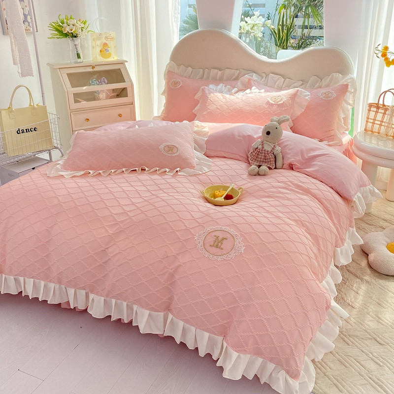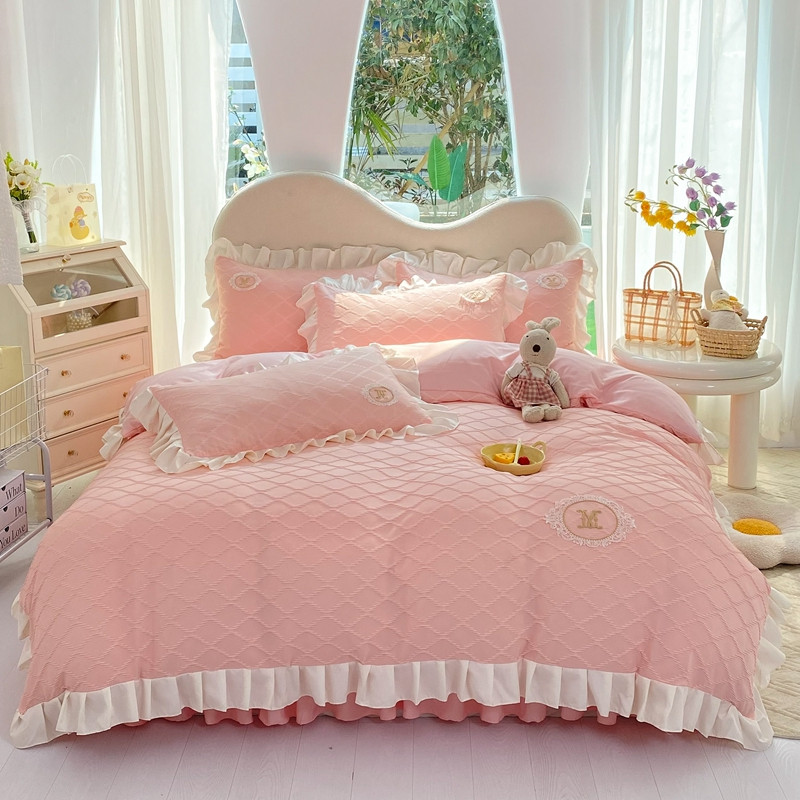 当前位置: 91家纺网 > 商品网购 > 床品套件 > 四件套 > 全棉普通四件套 > 韩约 2023新款 泡泡纱色织提花四件套 菱形格(樱花粉)
