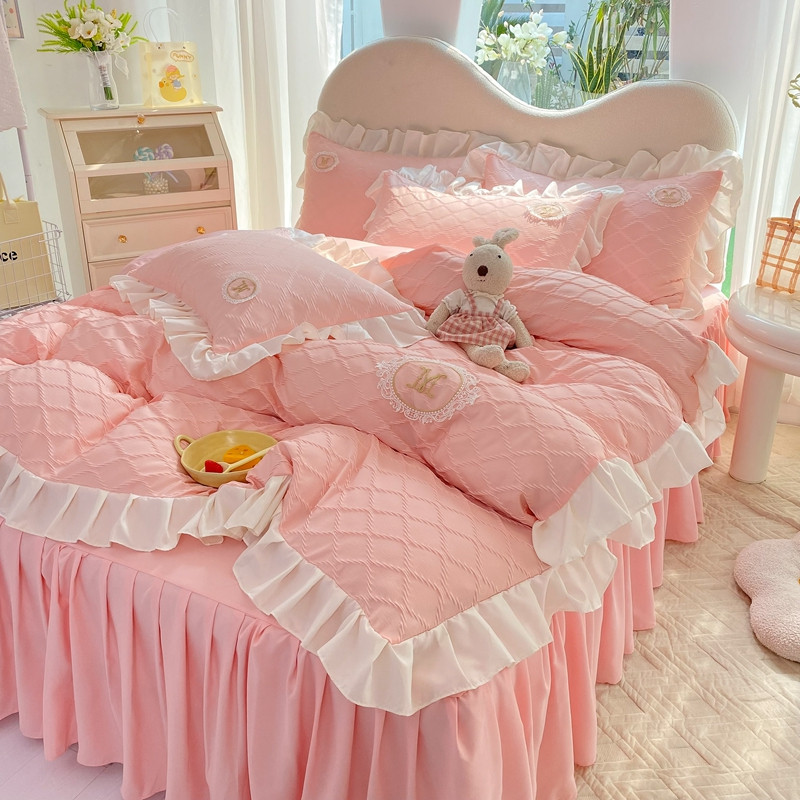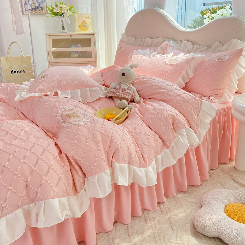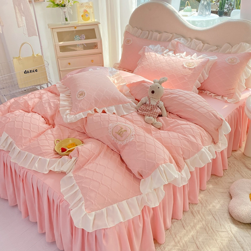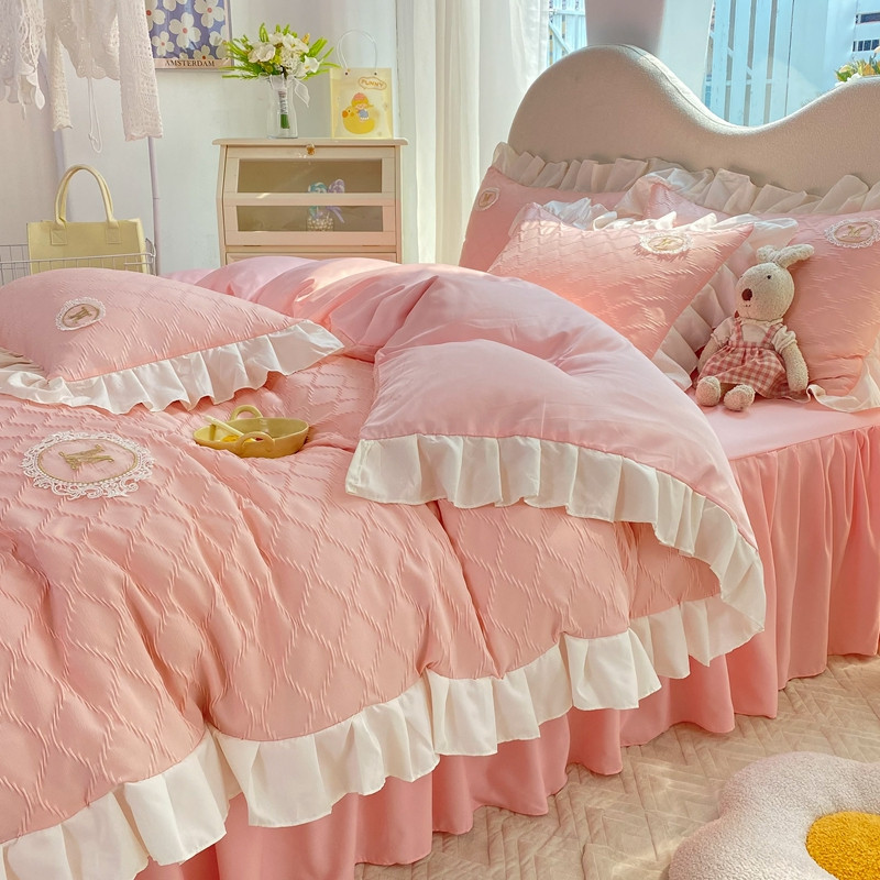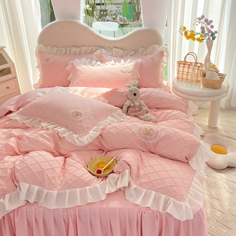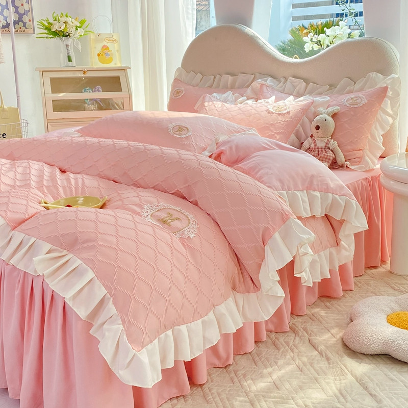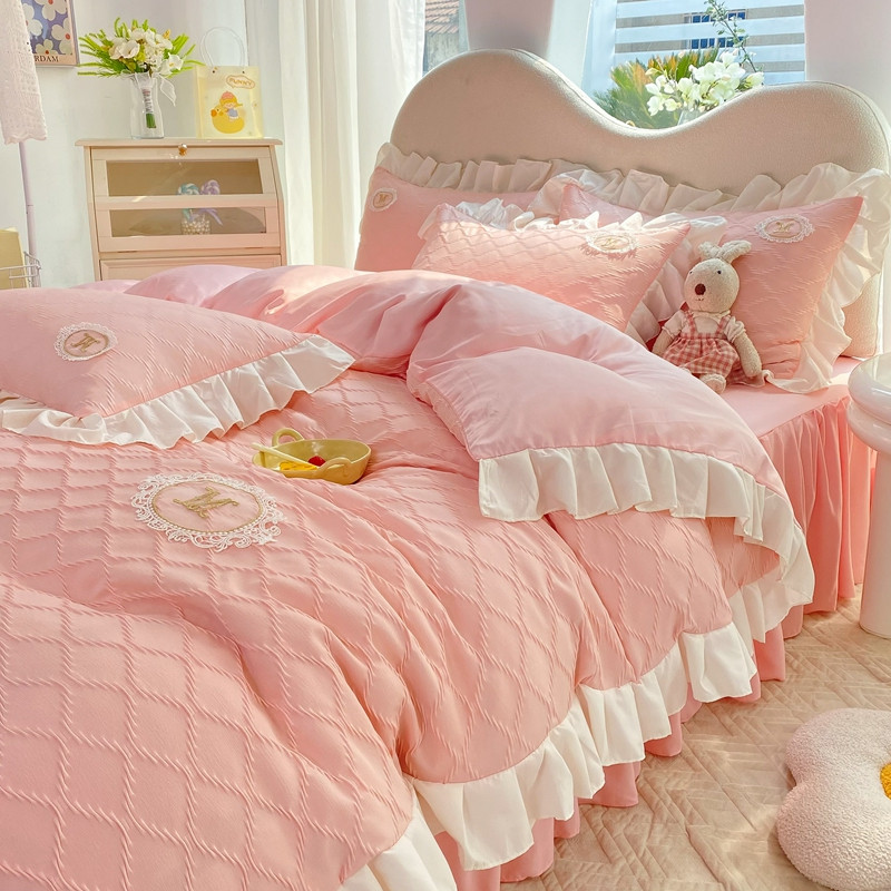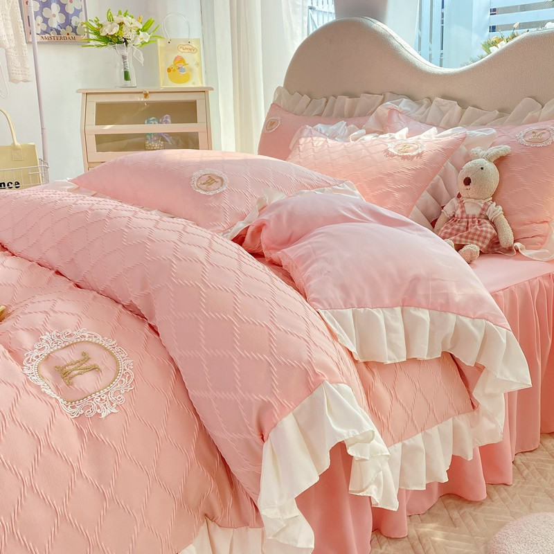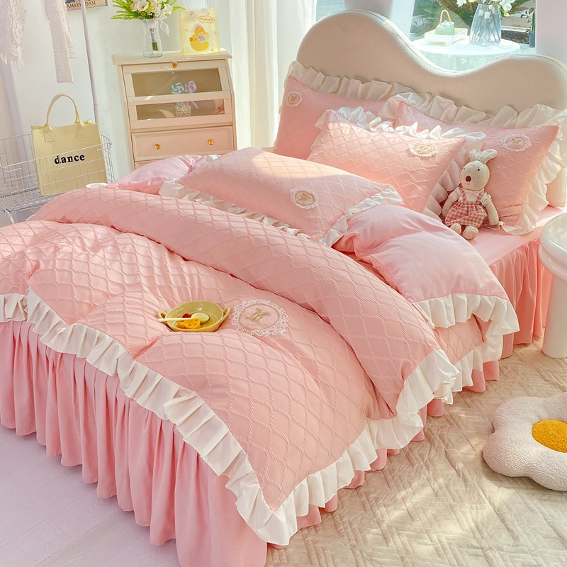 当前位置: 91家纺网 > 商品网购 > 床品套件 > 四件套 > 全棉普通四件套 > 韩约 2023新款 泡泡纱色织提花四件套 菱形格(樱花粉)