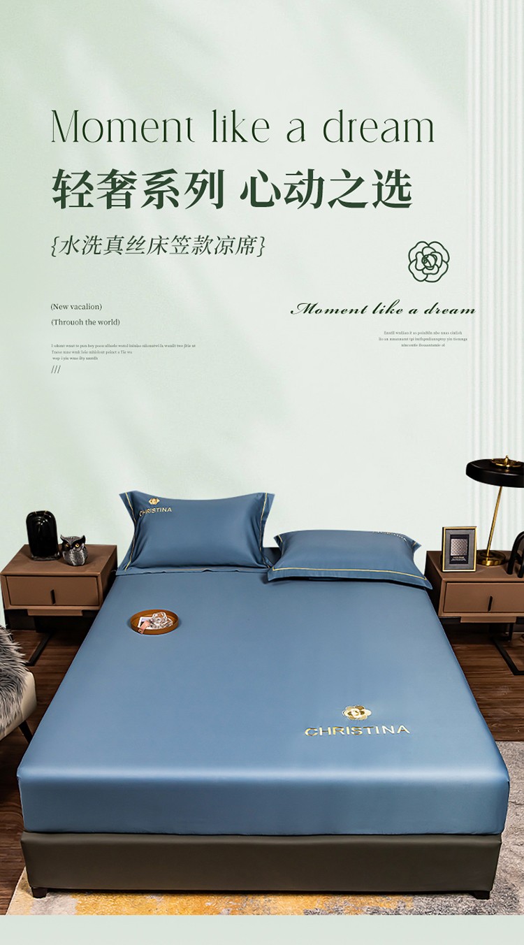 商品名称:丽美人 2023新款水洗真丝床笠款凉席-山茶花系列 山茶花-宾利兰