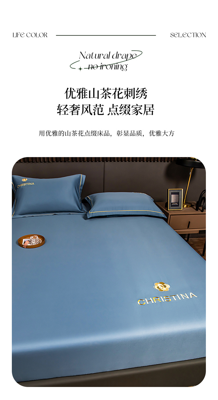 丽美人 2023新款水洗真丝床笠款凉席-山茶花系列 山茶花-宾利兰