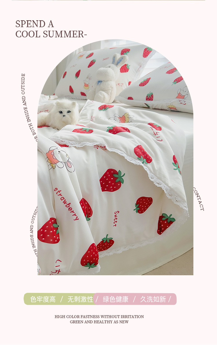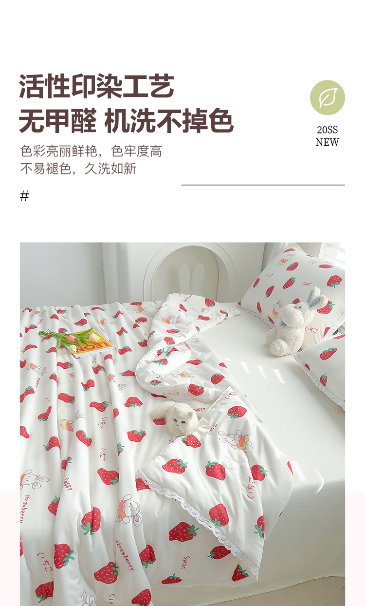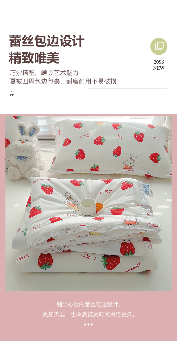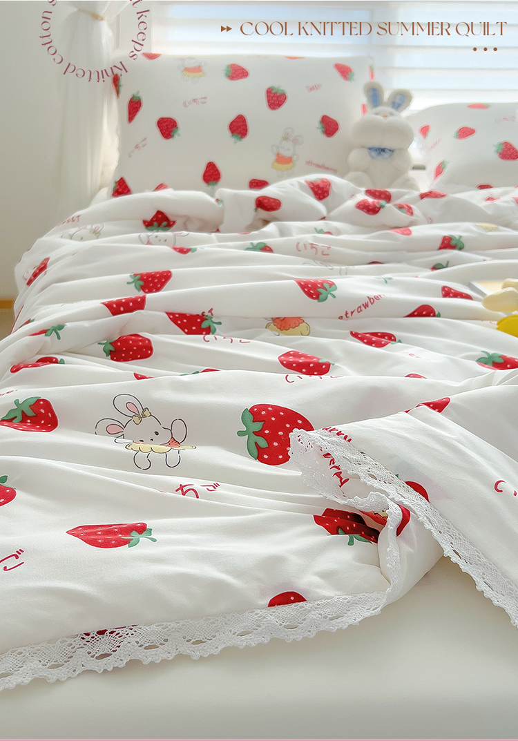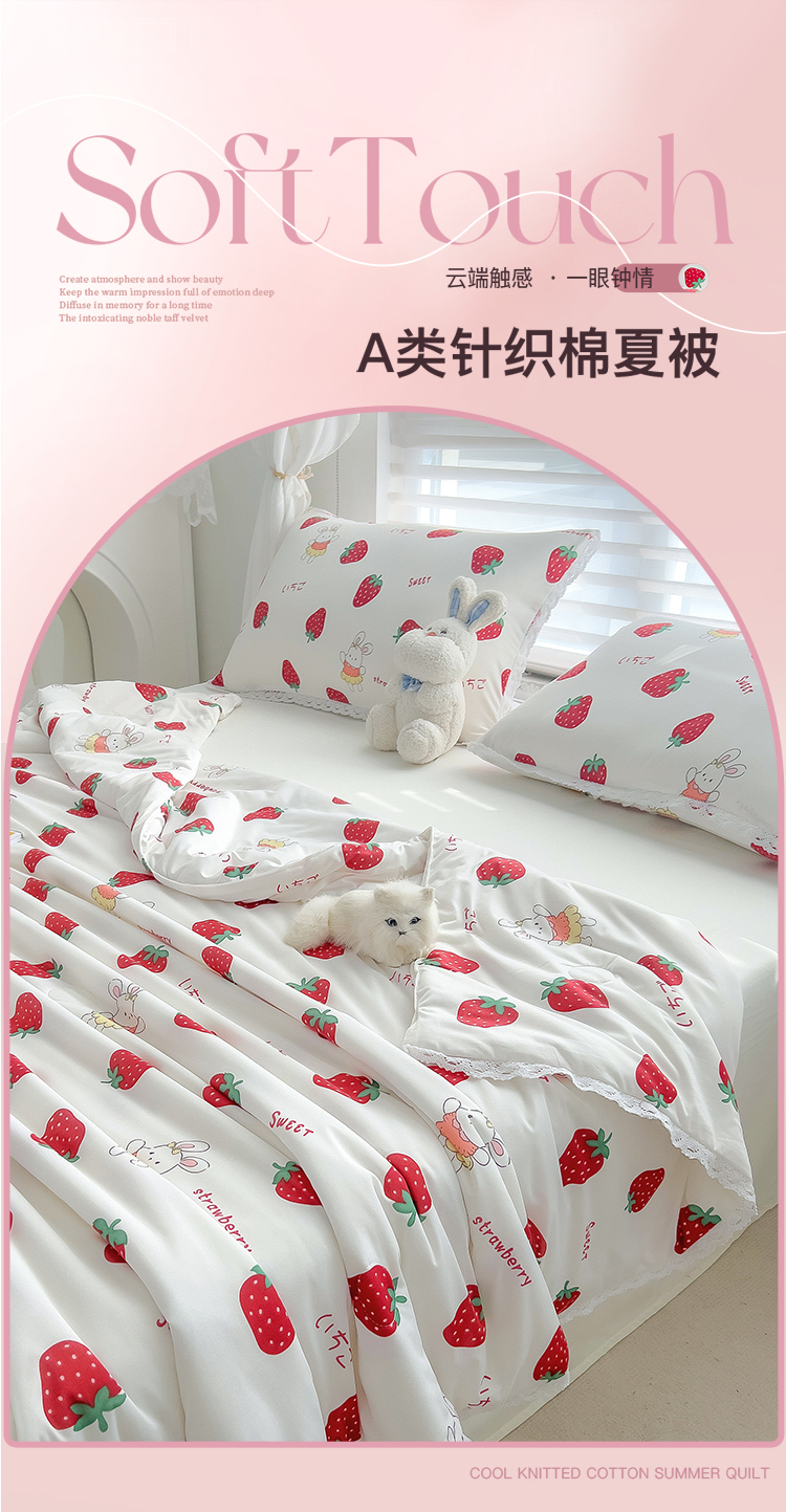商品名称:丽美人 2023新款A类针织棉夏被 奶油草莓