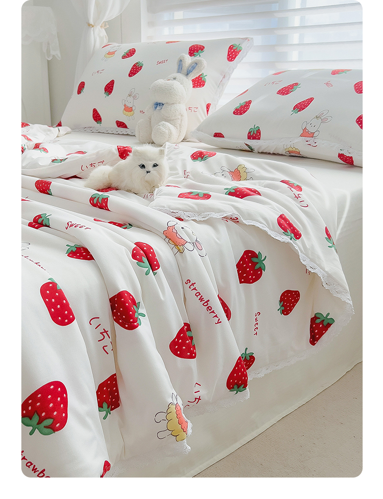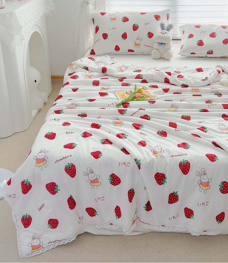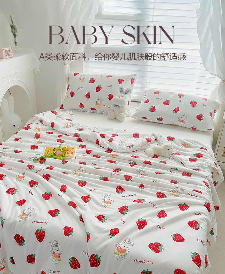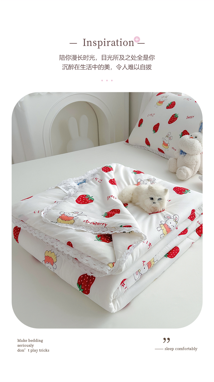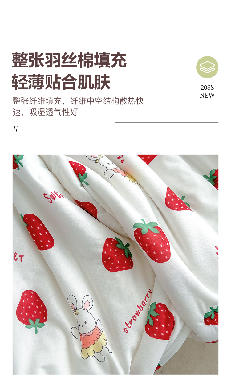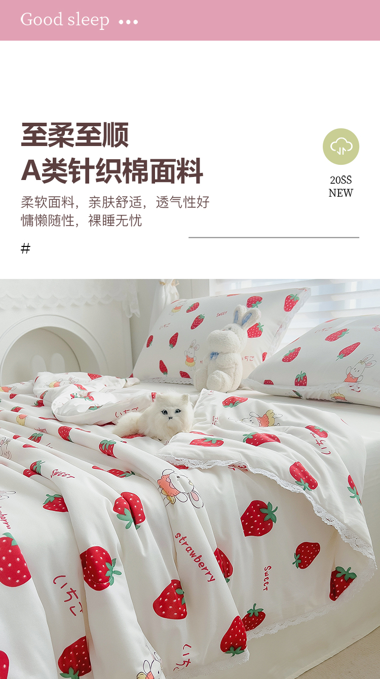 商品名称:丽美人 2023新款A类针织棉夏被 奶油草莓