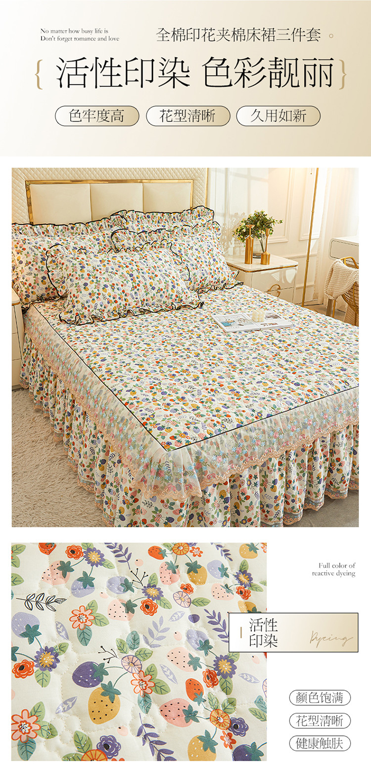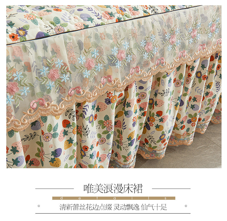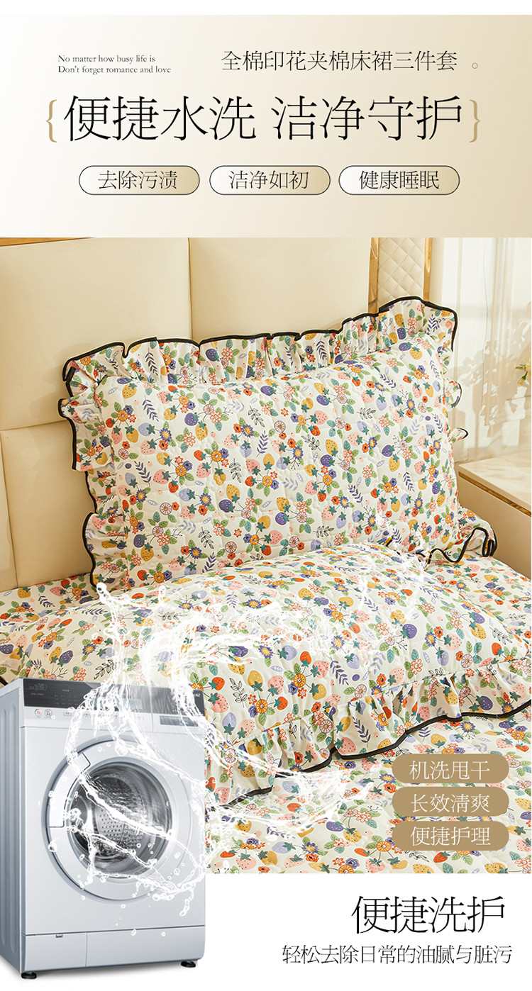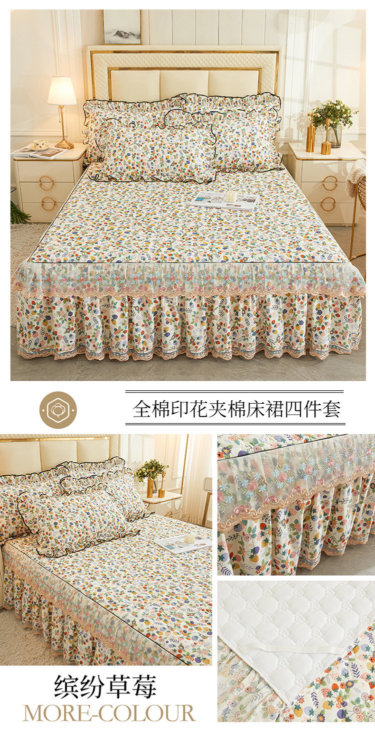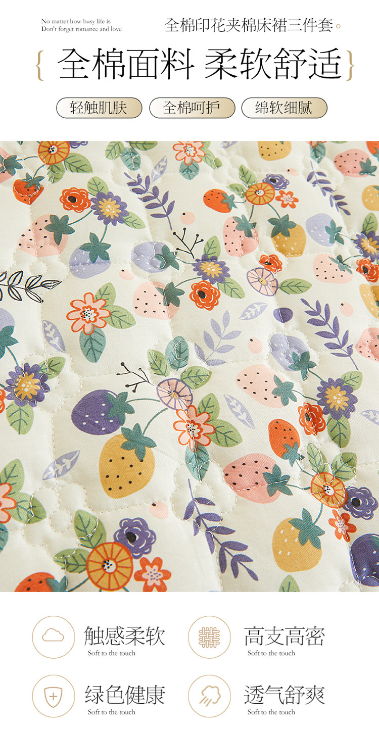 商品名称:宜凡 2023新款四季款全棉夹棉床裙三件套 缤纷草莓
