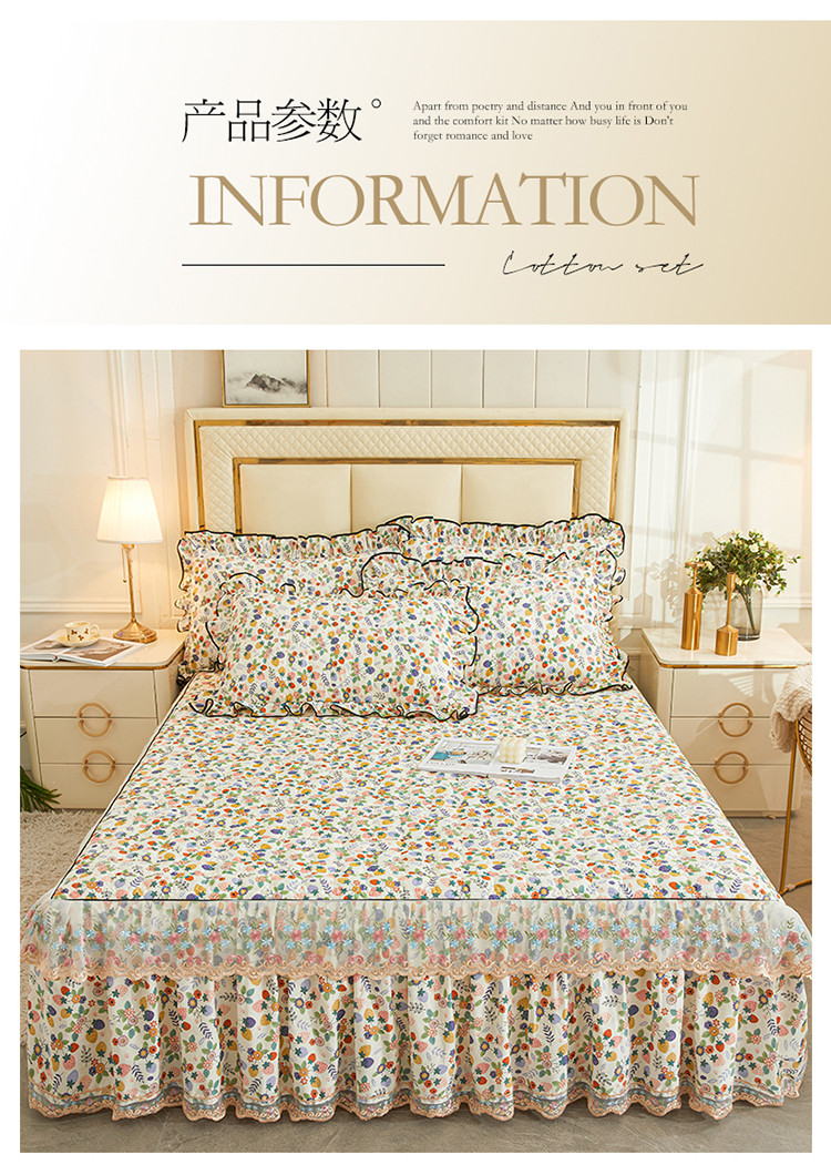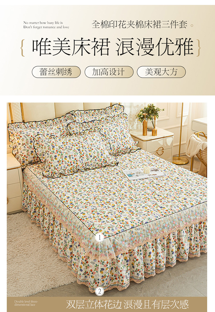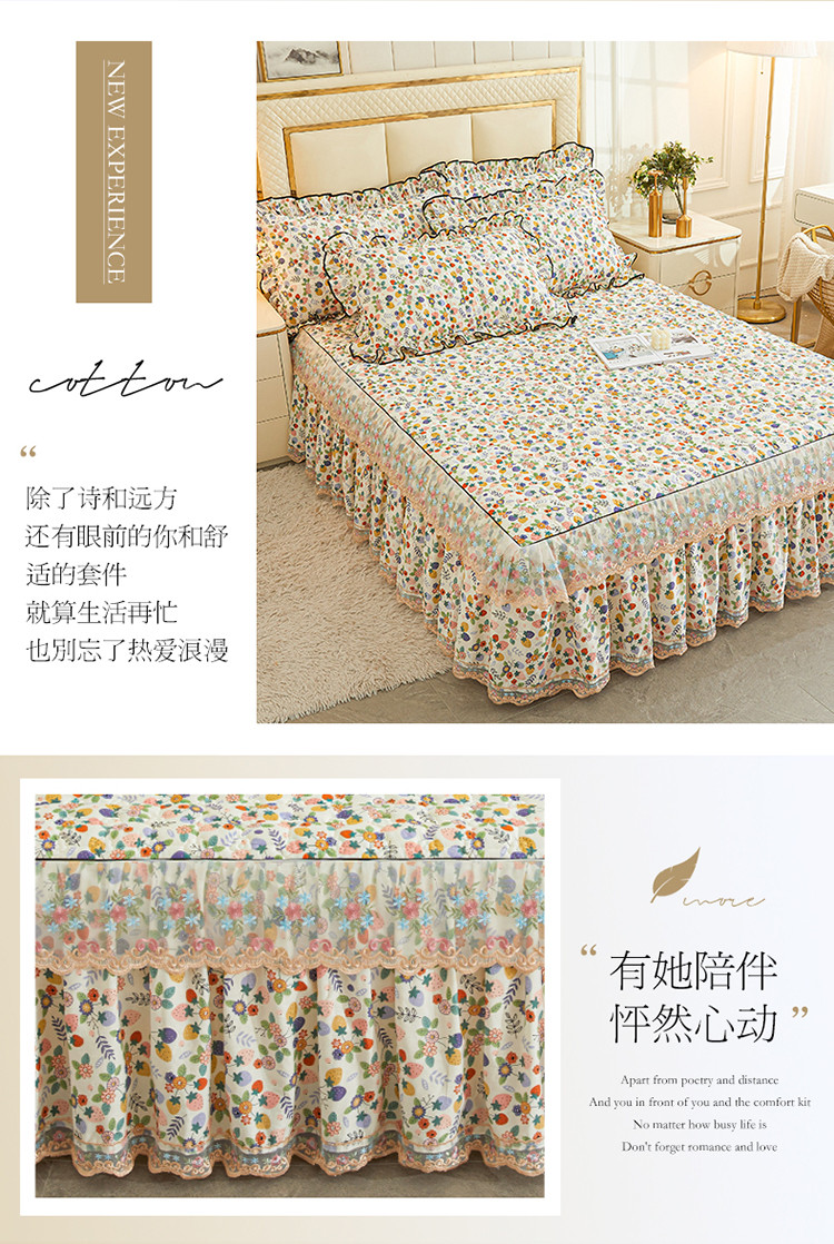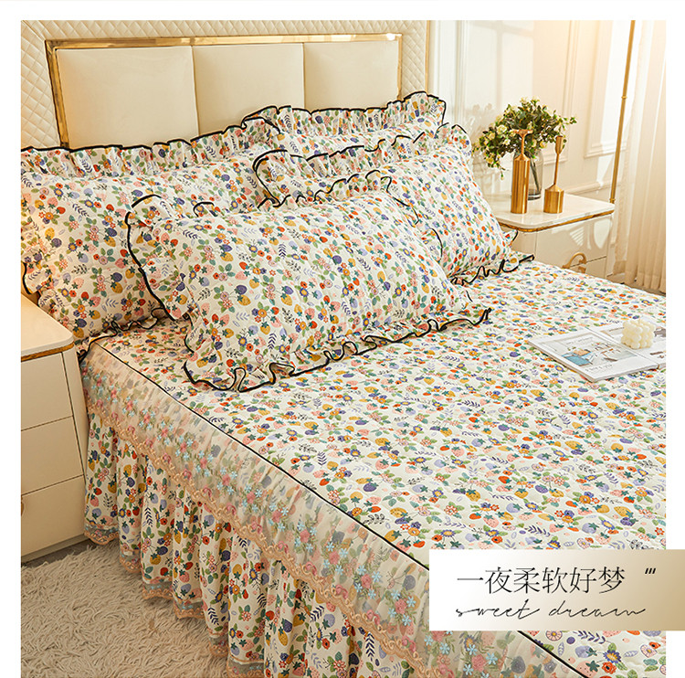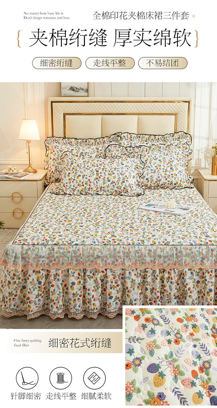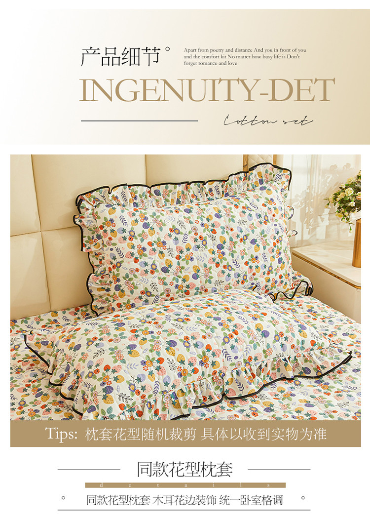 商品名称:宜凡 2023新款四季款全棉夹棉床裙三件套 缤纷草莓