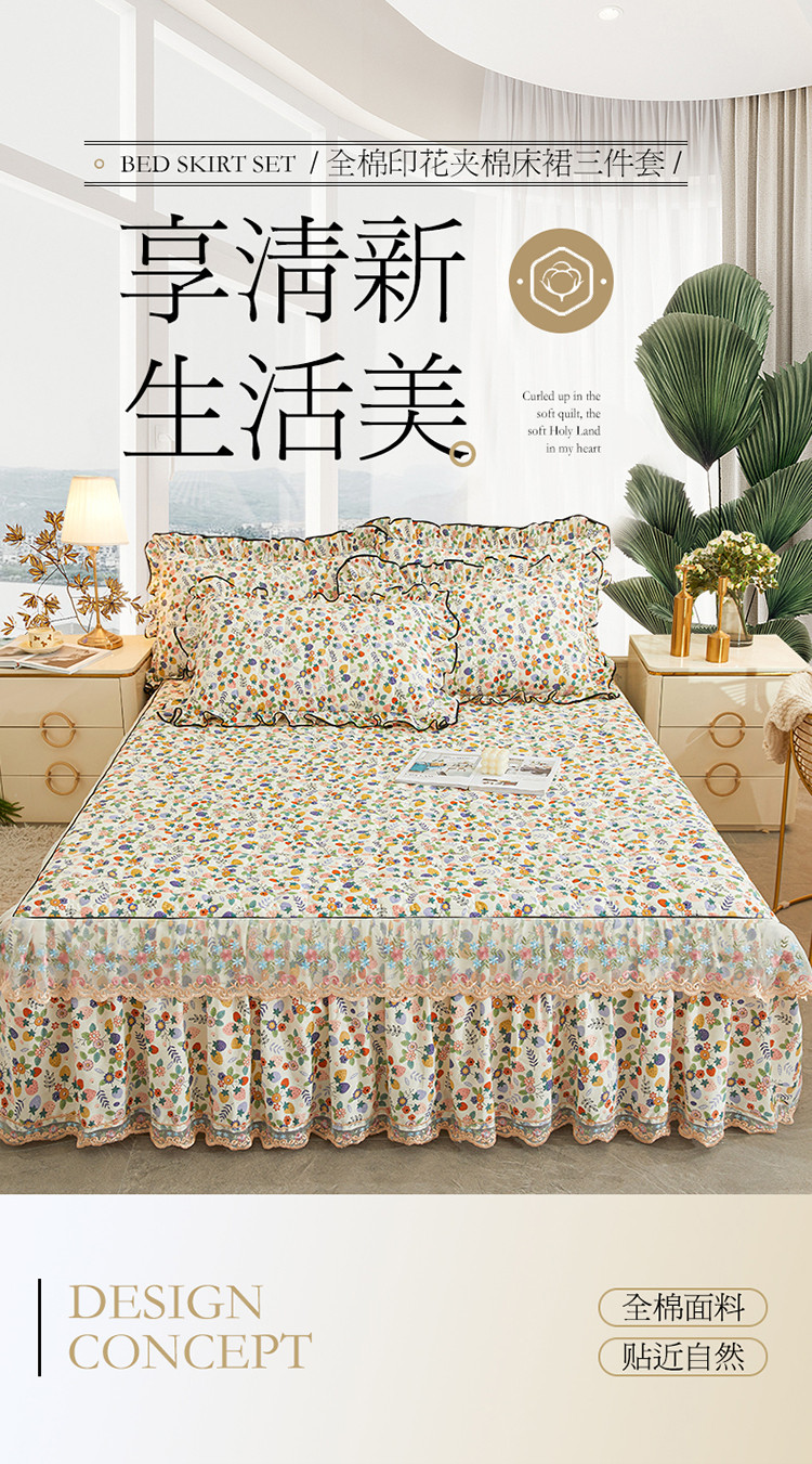 (总)宜凡家纺 2025新款全棉数码印花床裙三件套系列一,静若幽兰,浮云织梦,梦幻花园,陌上花开