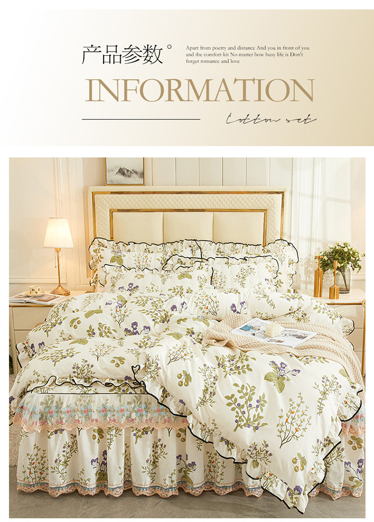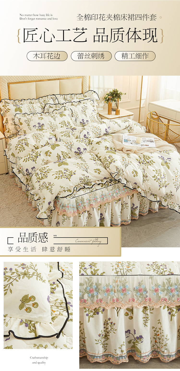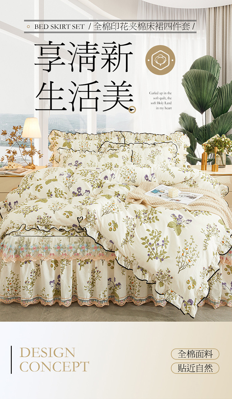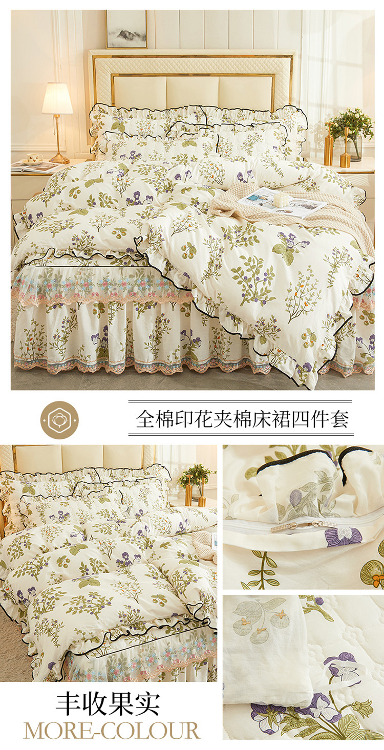 当前位置: 91家纺网 > 商品网购 > 床品套件 > 四件套 > 全棉普通四件套 > 宜凡 2023新款四季款全棉夹棉床裙四件套 丰收果实