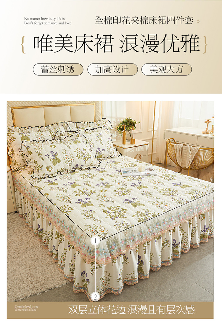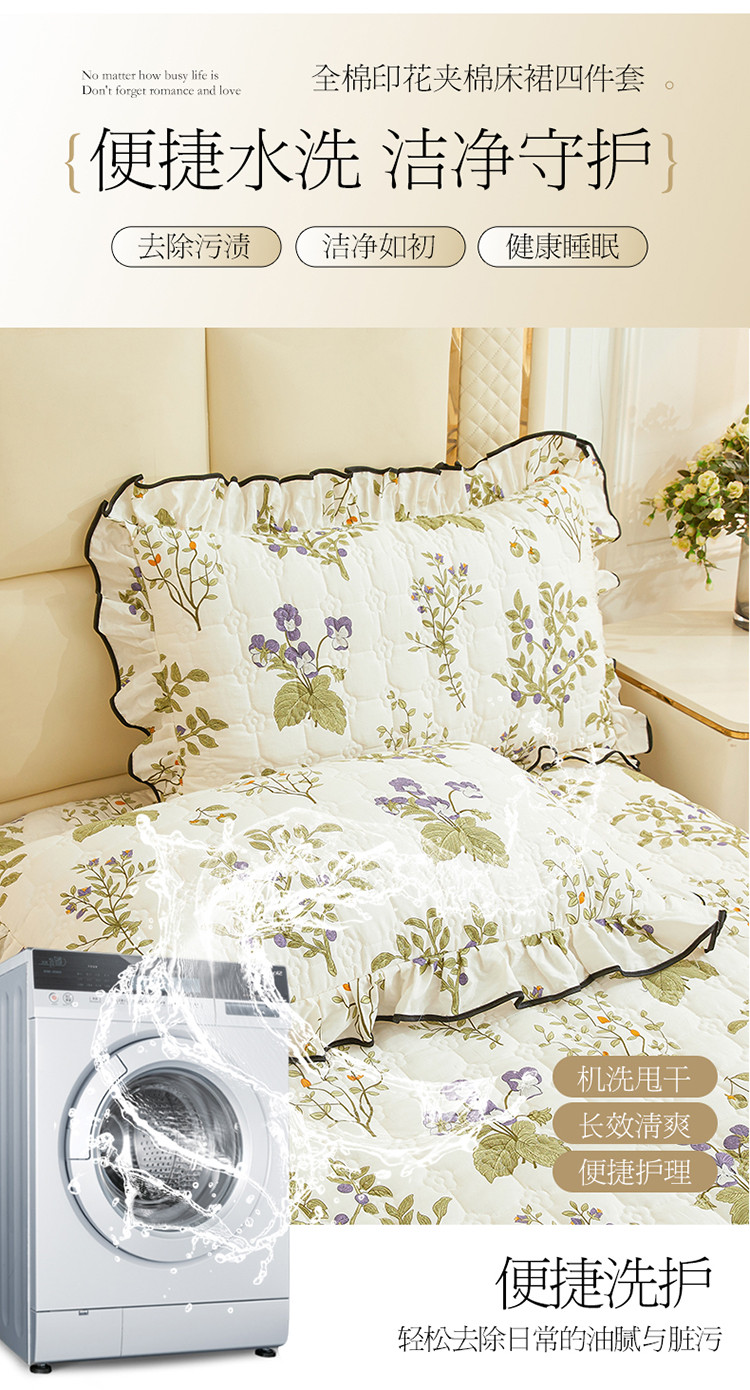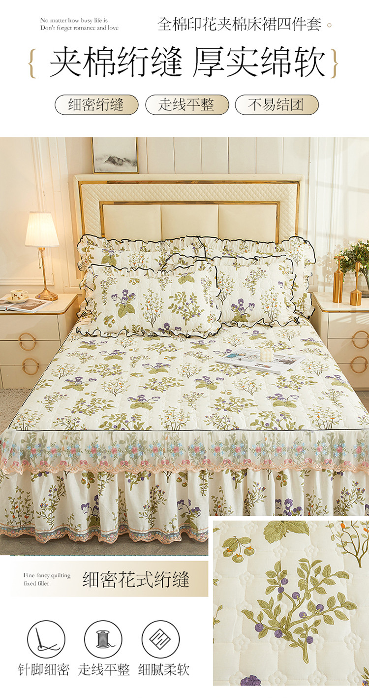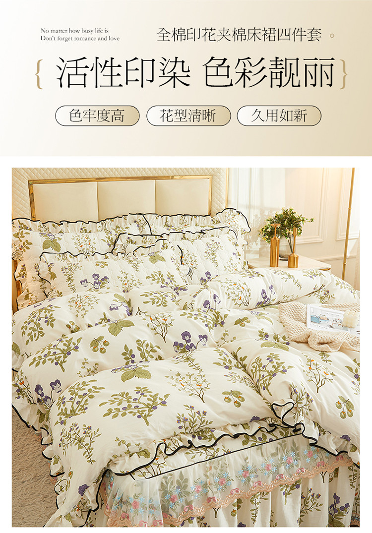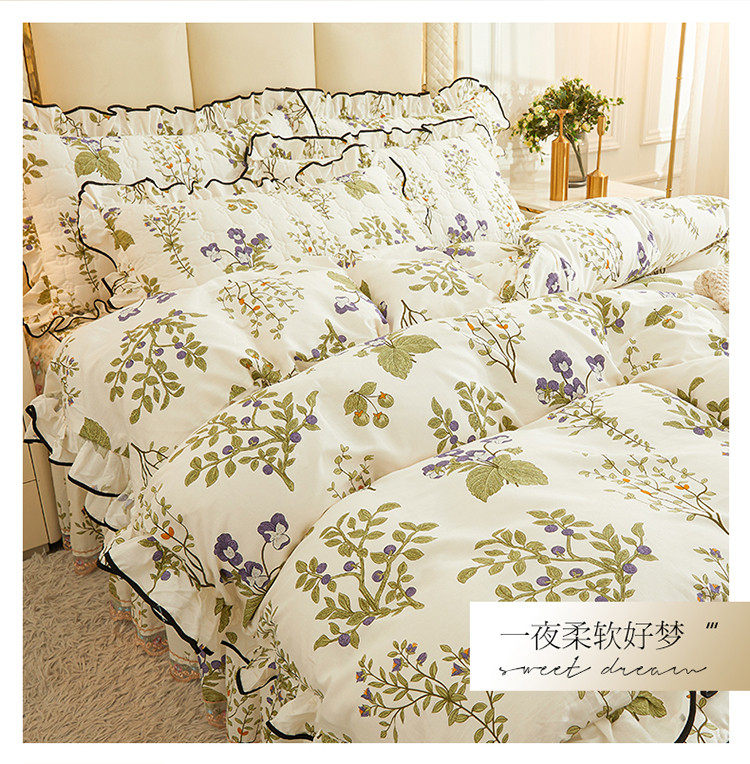 当前位置: 91家纺网 > 商品网购 > 床品套件 > 四件套 > 全棉普通四件套 > 宜凡 2023新款四季款全棉夹棉床裙四件套 丰收果实