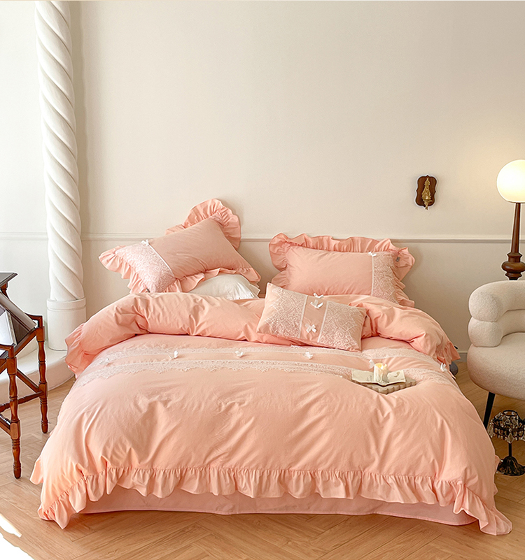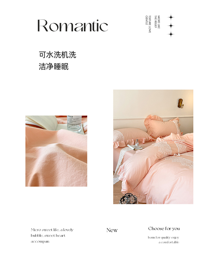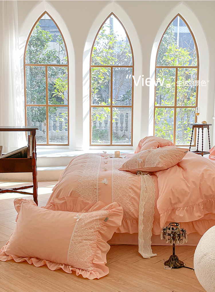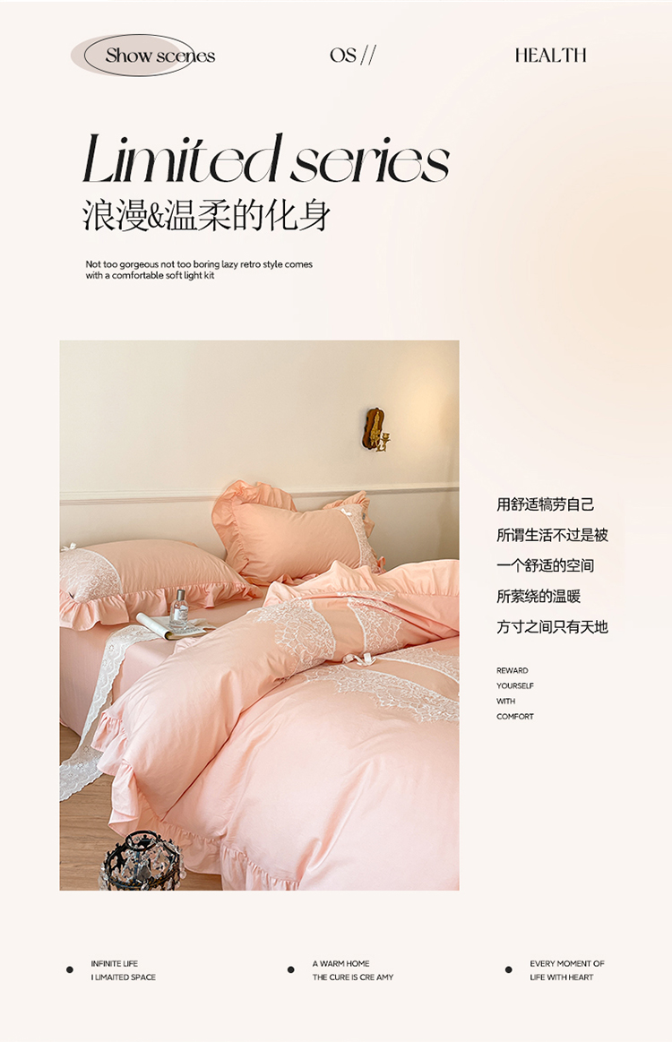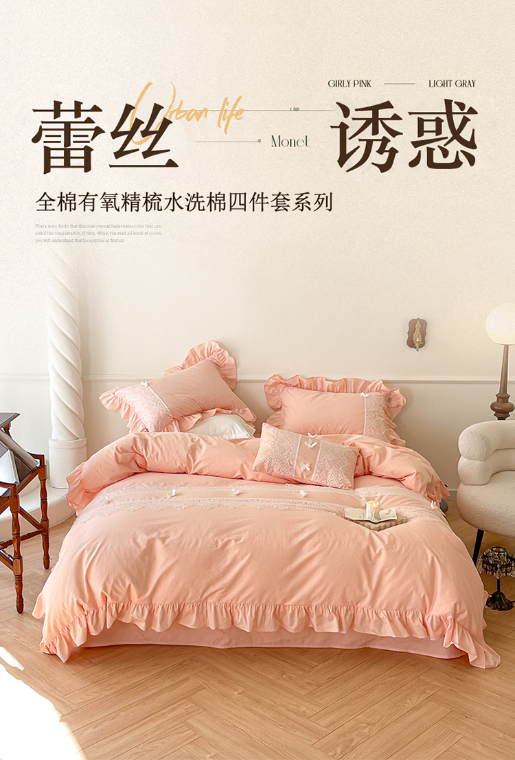 (总)玛奇朵 2025新款韩系少女全棉立体提花四件套-,青纱粉黛