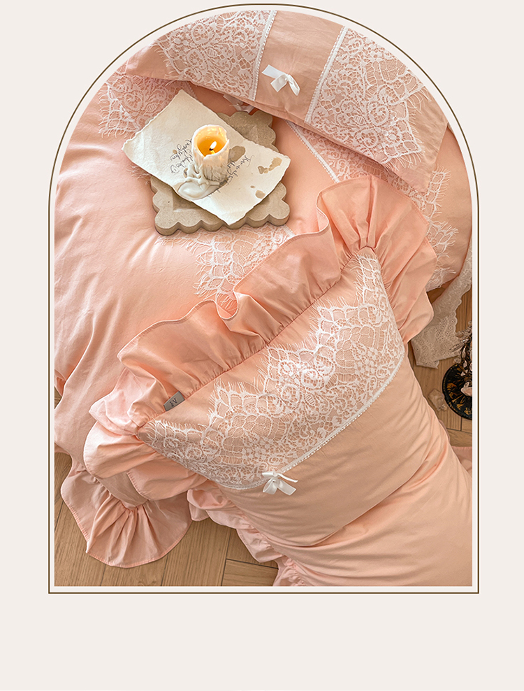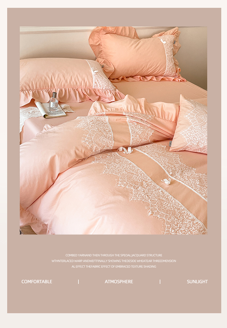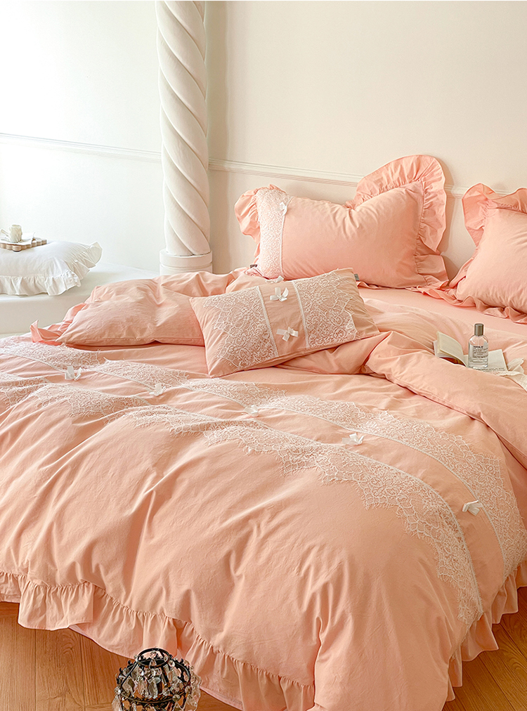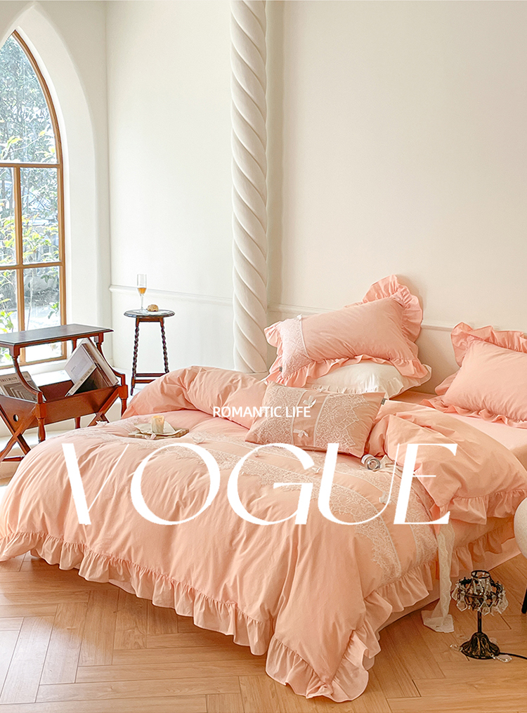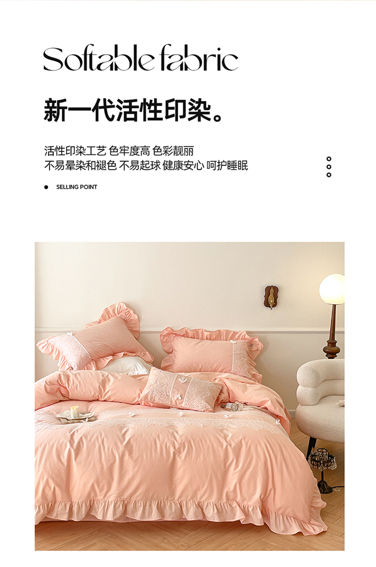 (总)玛奇朵 2025新款韩系少女全棉立体提花四件套-,青纱粉黛
