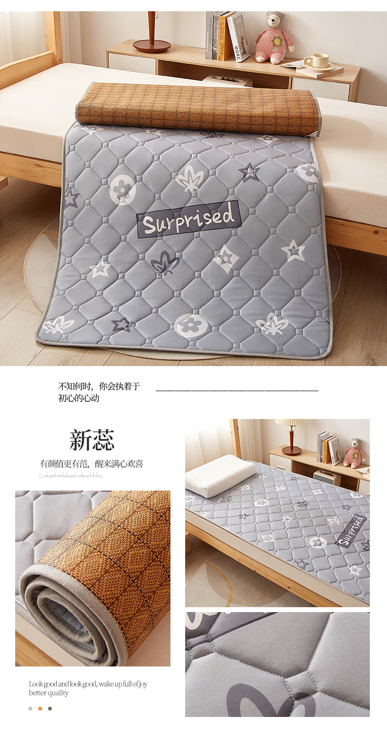 商品名称:花言狐语 2025新款AB双面可用藤席夹棉床褥地垫单人款 新蕊