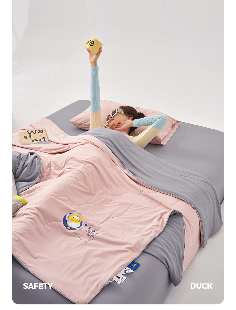 商品名称:莱福仕家纺 2024新款解放鸭力凉感蚕丝夏被 音速粉