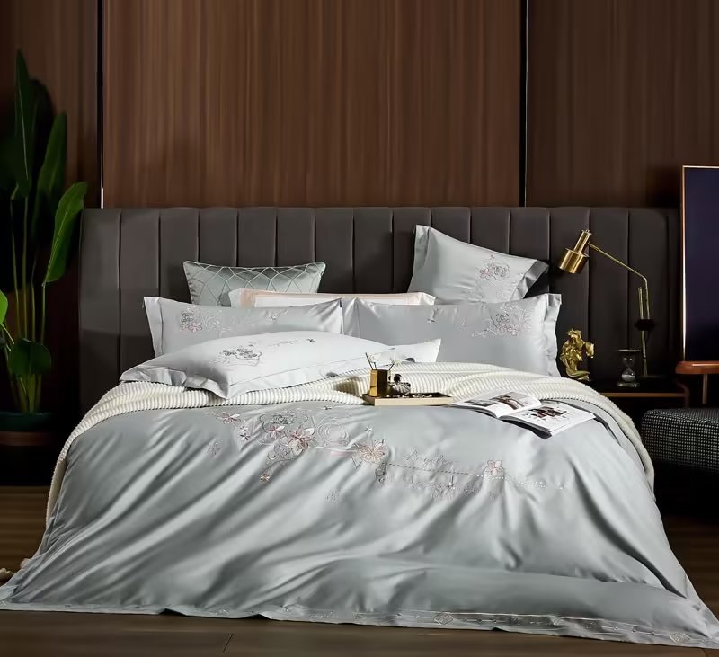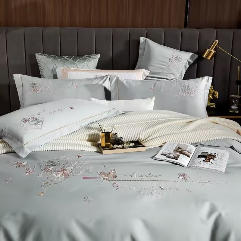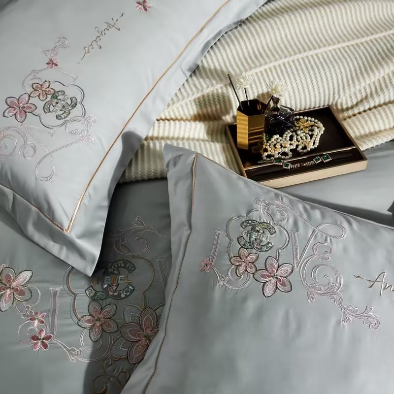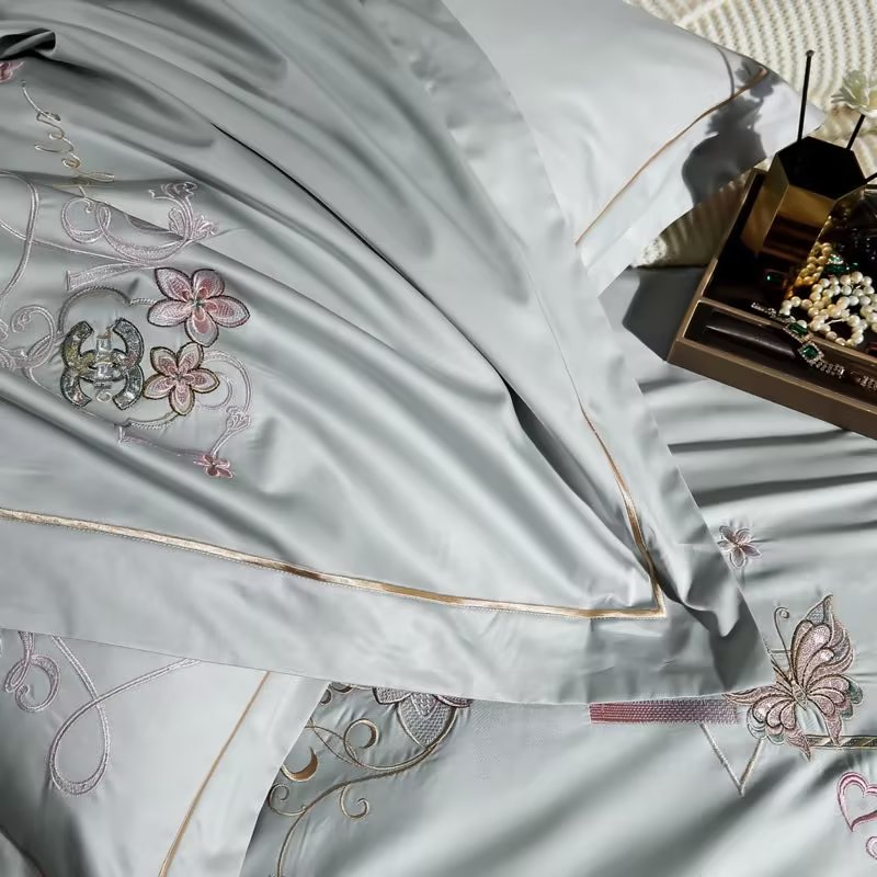 U品汇 2023新品120支60S长绒棉宽边刺绣花贡缎纯棉全棉四件套 暗香-时尚灰