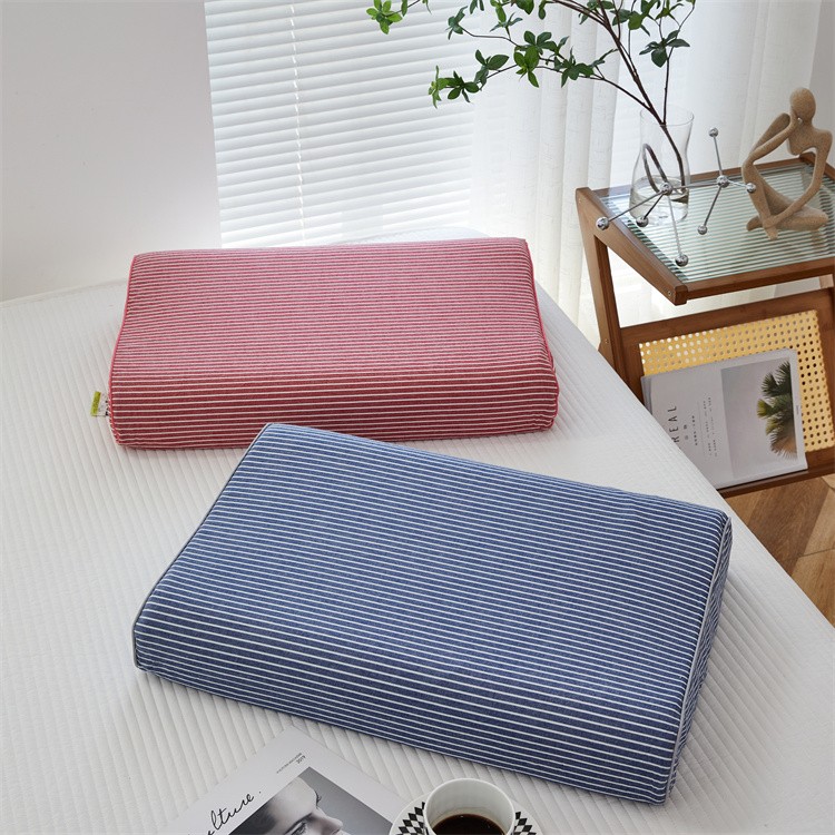 新款天然乳胶枕高低平面款面料全棉水洗棉条纹面料乳胶枕头