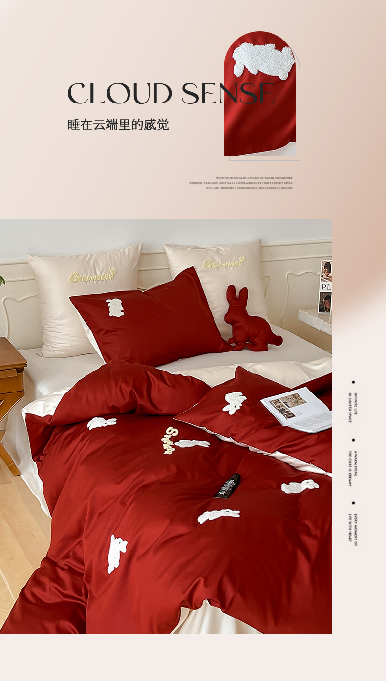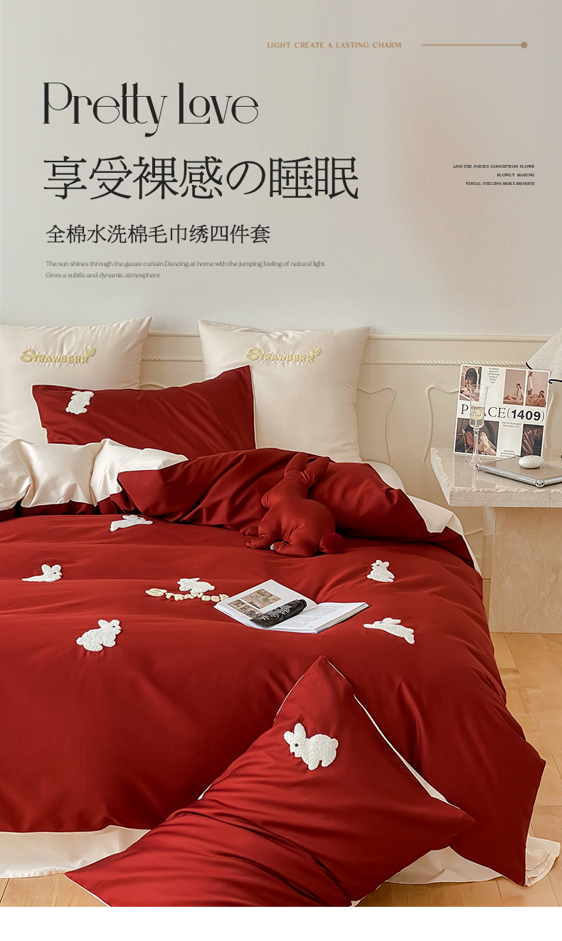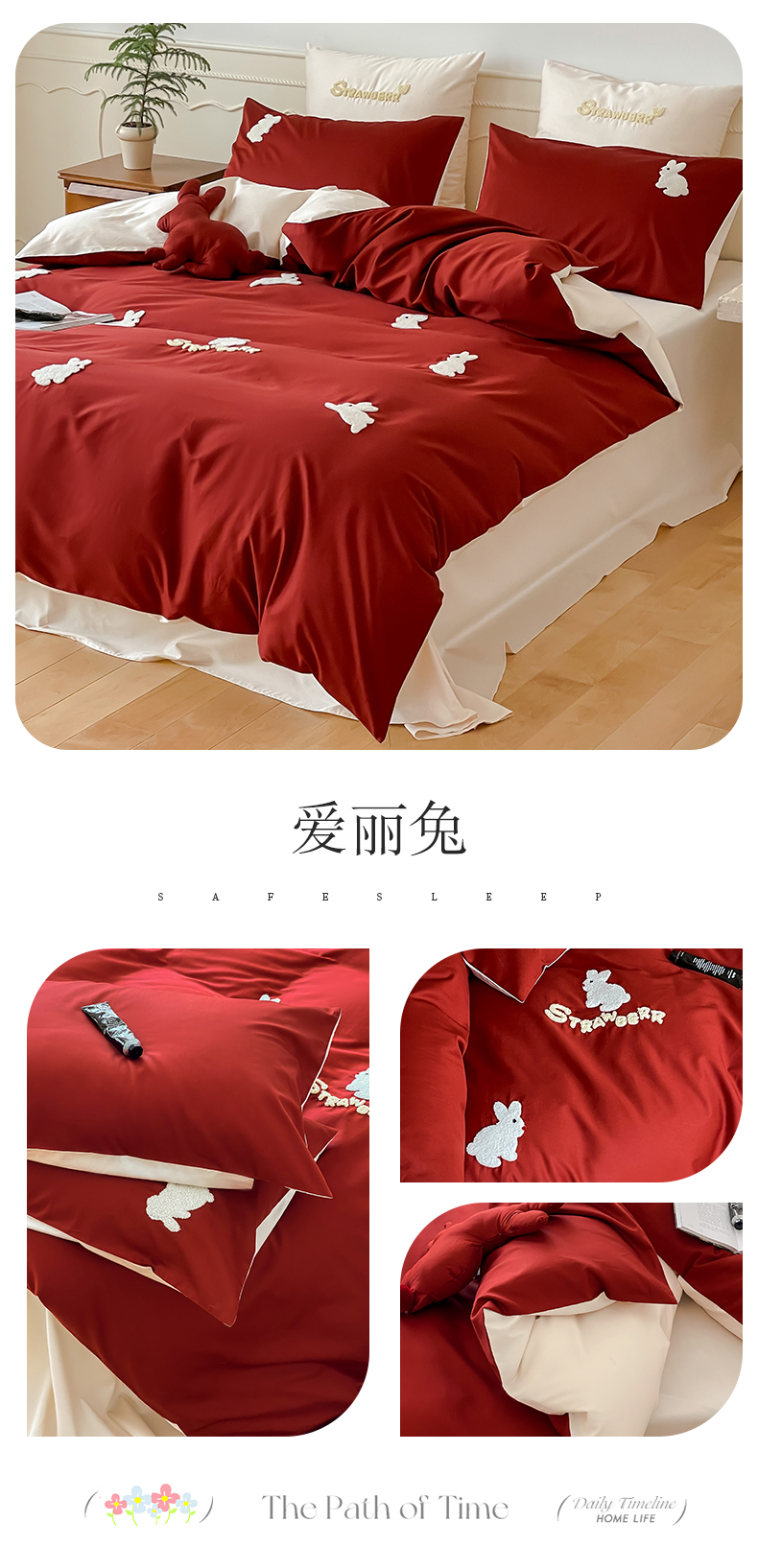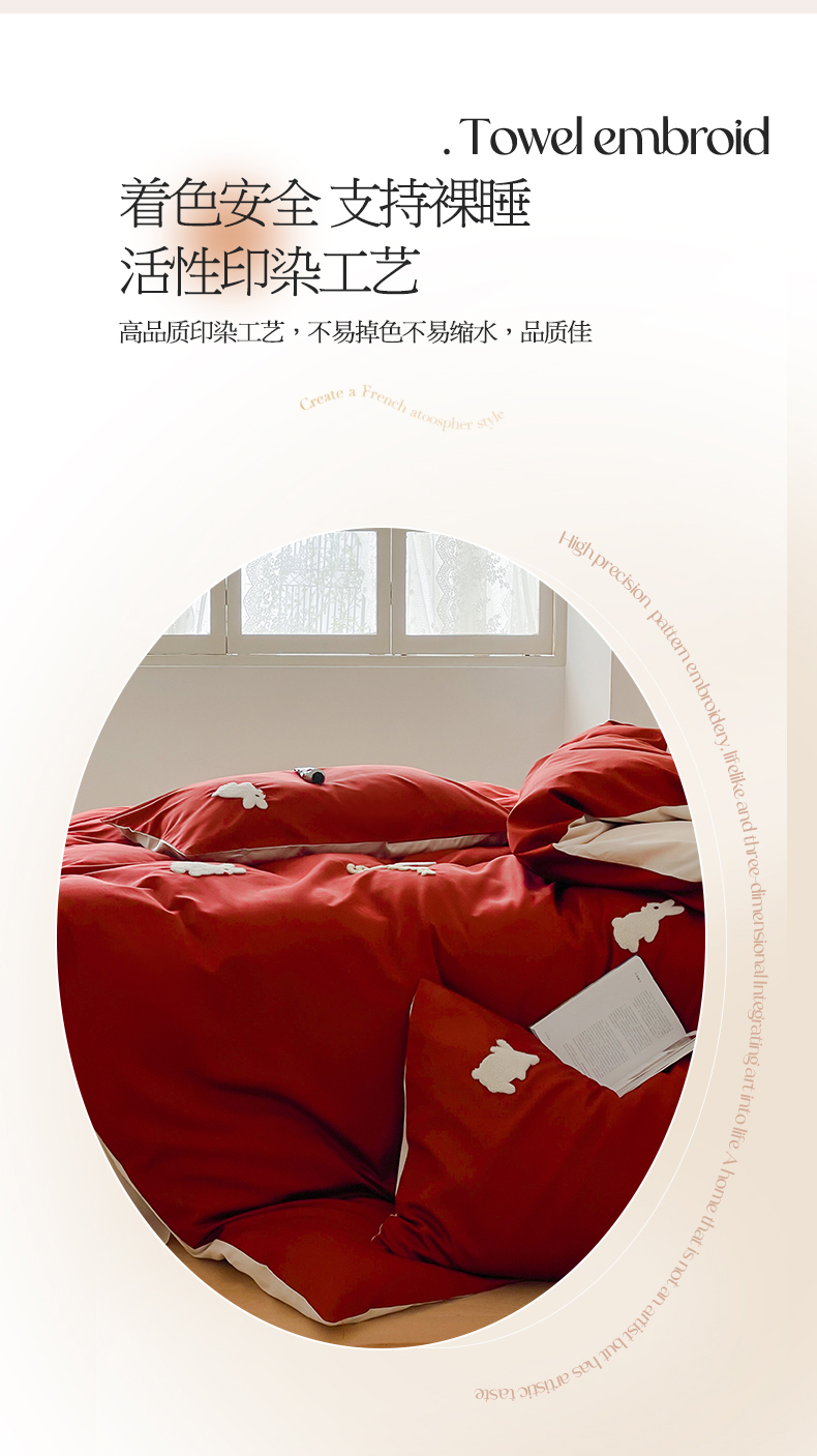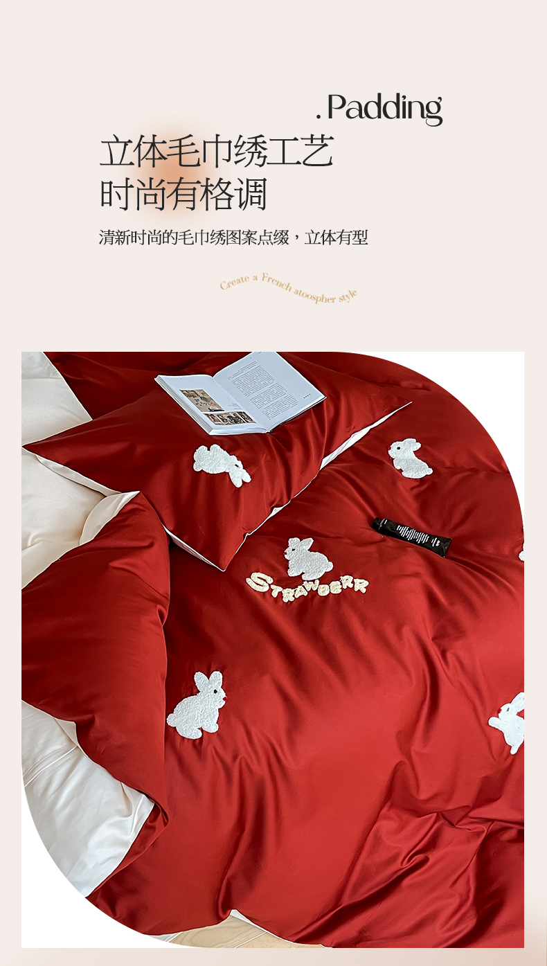 商品名称:名品优仓2023新款毛巾绣撞色荷叶边四件套 爱丽兔