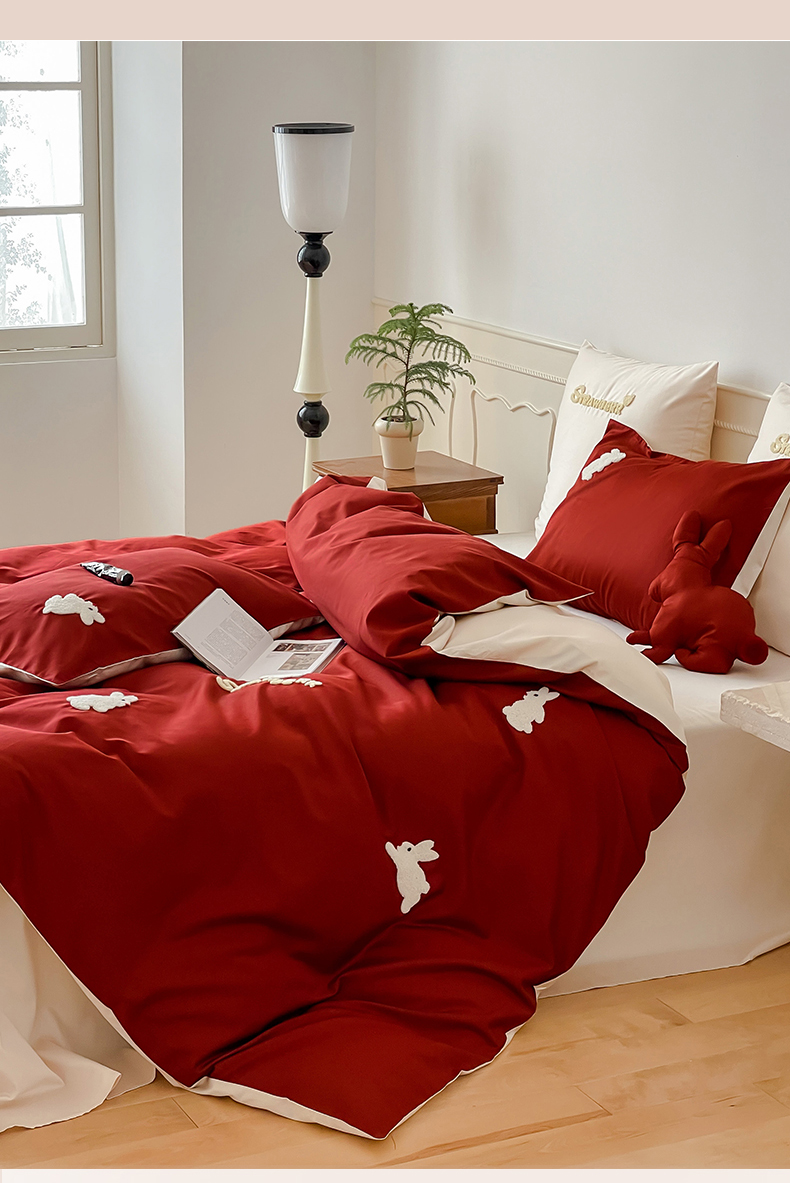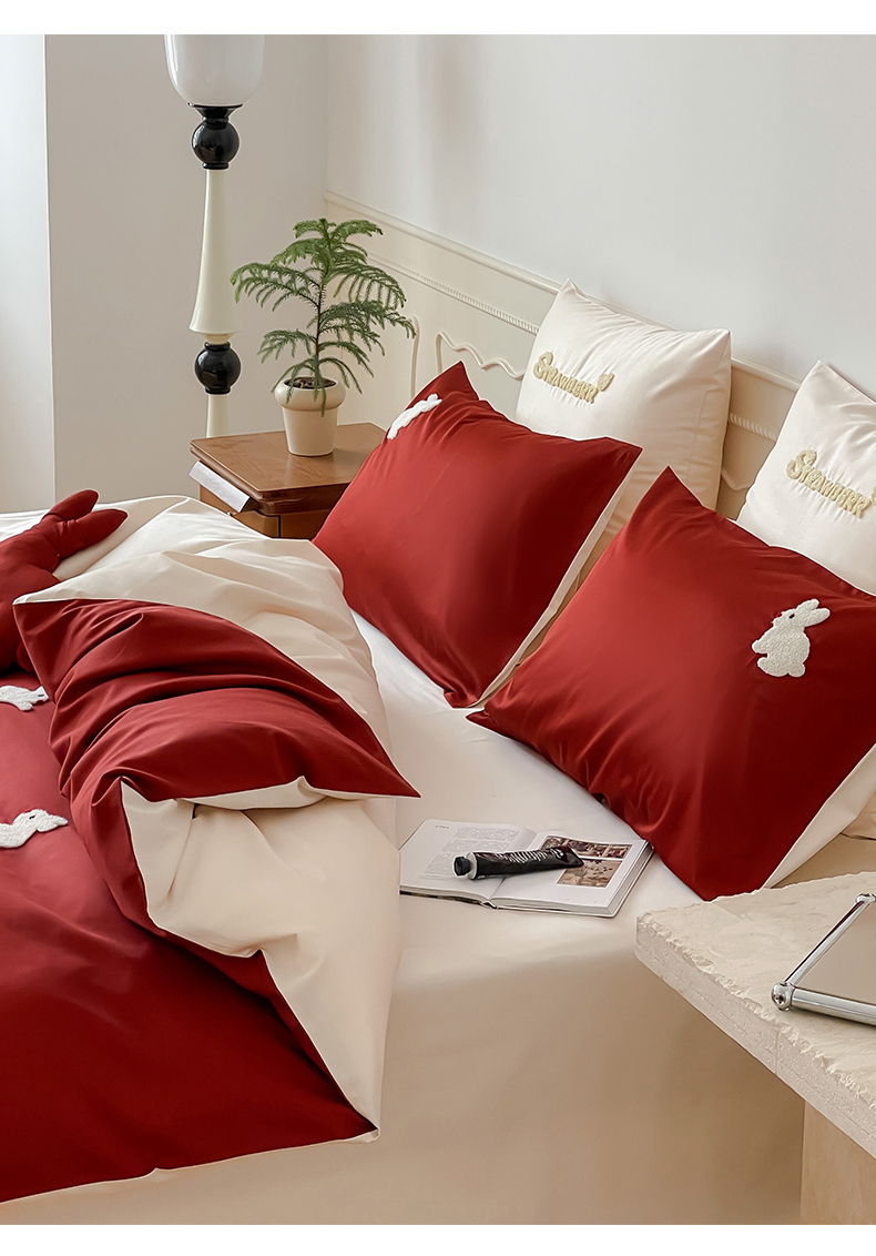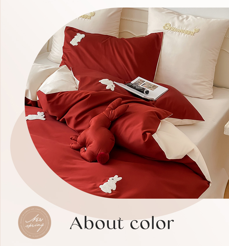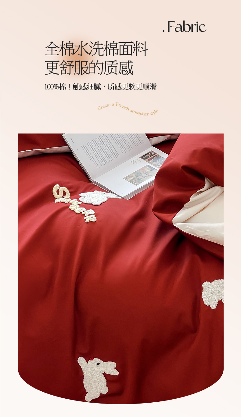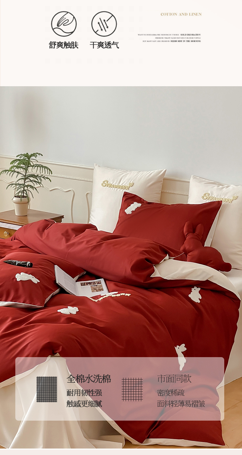 商品名称:名品优仓2023新款毛巾绣撞色荷叶边四件套 爱丽兔