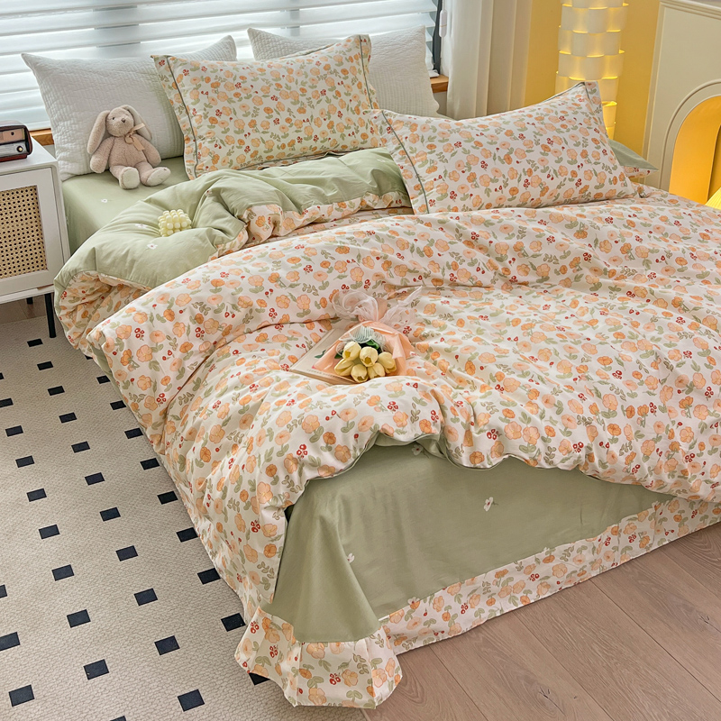 2024新款13372纯棉大版印+绣小清新款四件套 草莓之恋,草莓之恋