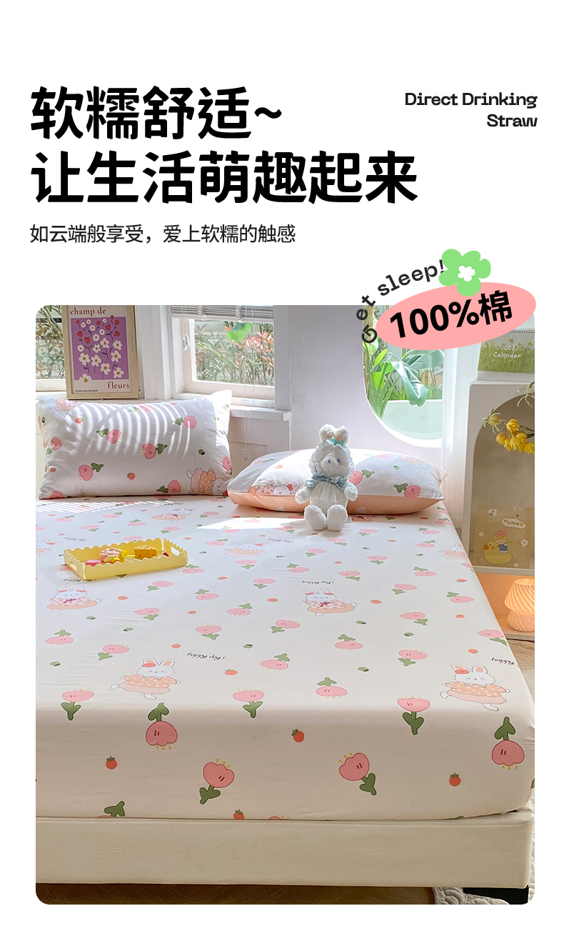 商品名称:多品 2023年13070单品床笠【可搭配枕套一起卖】 花季兔