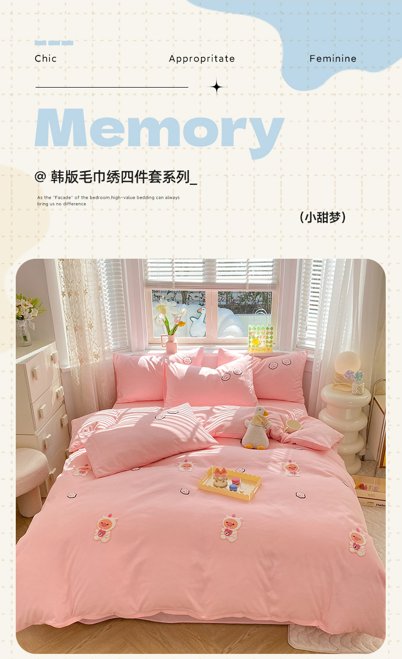 商品名称:丝印良品 2023新款专版水洗棉麻毛巾绣四件套 奶茶宝宝