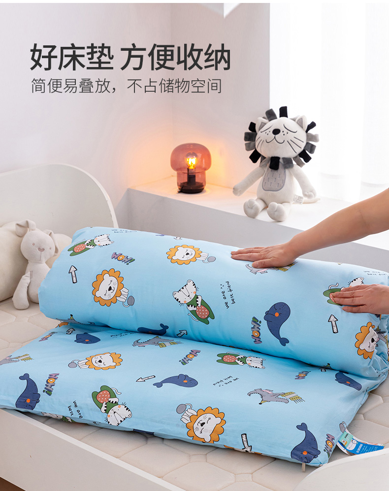 当前位置: 91家纺网 > 商品网购 > 床垫/床褥 > 普通床垫 > 喜多兔 2023新款40S纯棉印花抗菌床垫 狮子伙伴蓝色