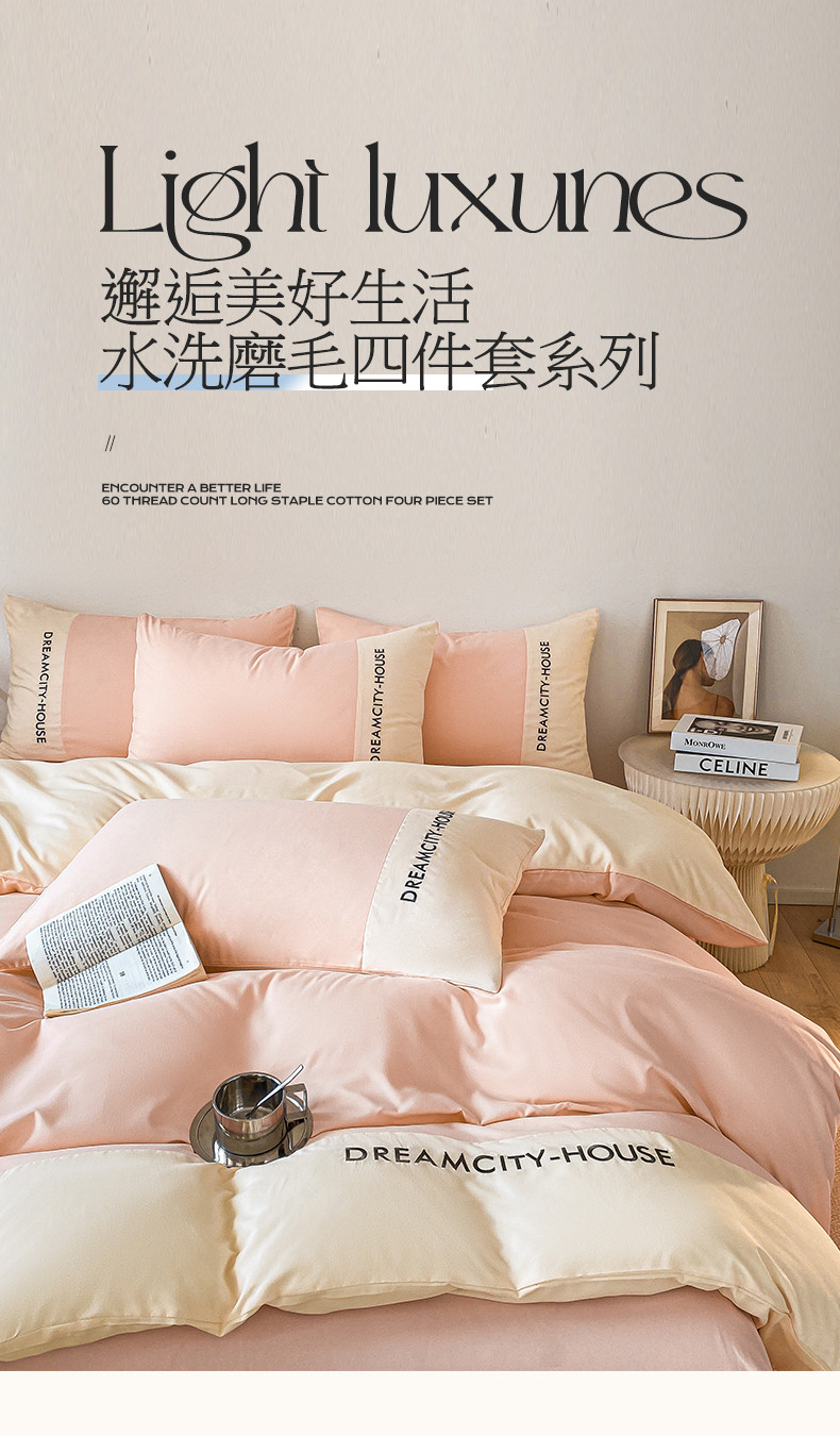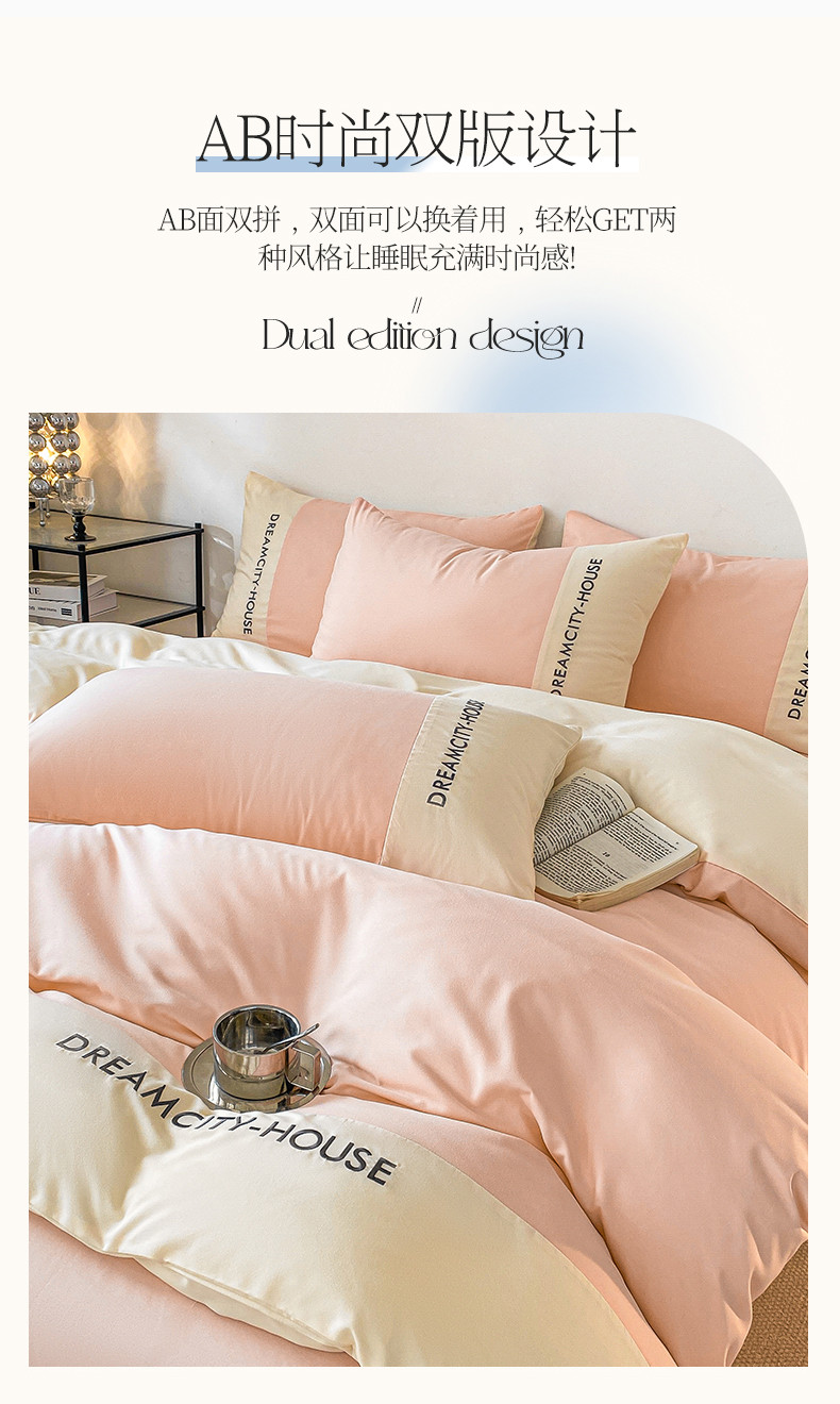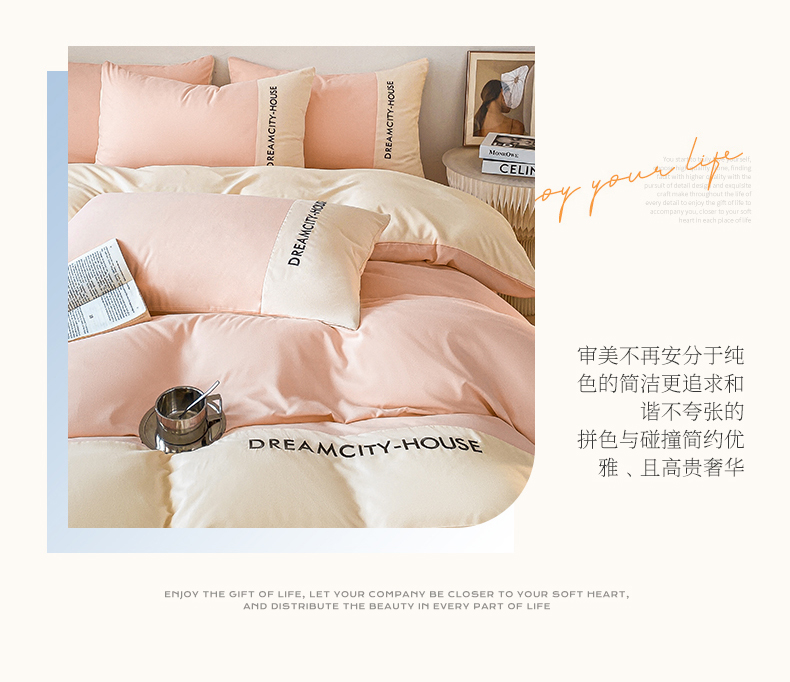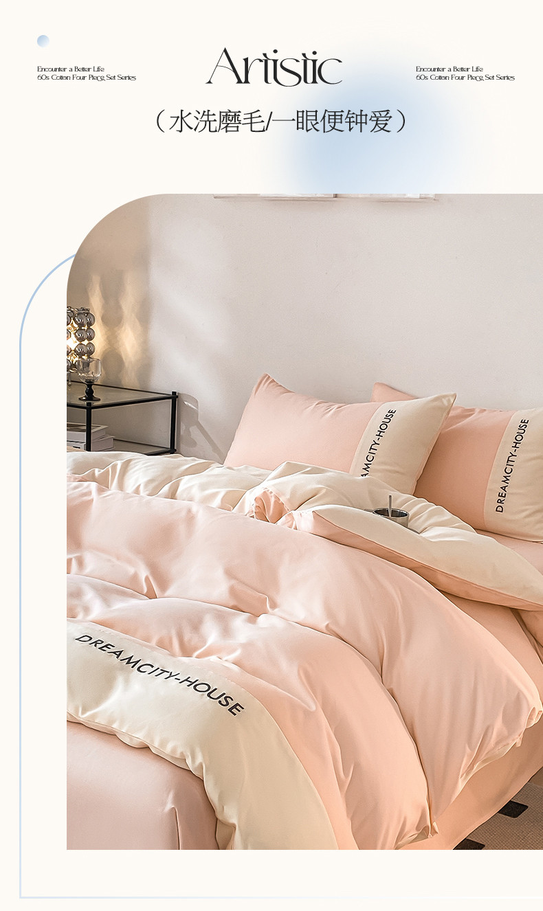 当前位置: 91家纺网 > 商品网购 > 床品套件 > 四件套 > 普通磨毛四件套 > 盛秋家纺 2025新款思雅系列水洗磨毛双拼刺绣四件套 思雅-奶油粉+奶昔白