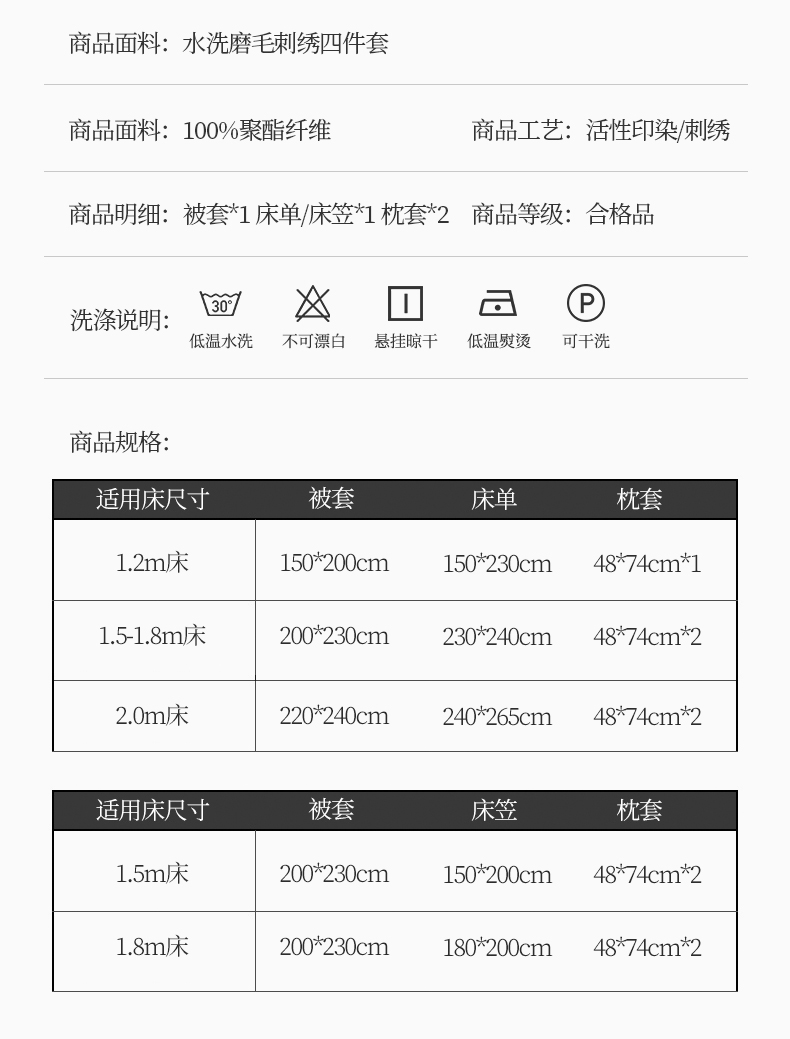1.5m床笠款四件套 | ¥65.00 |