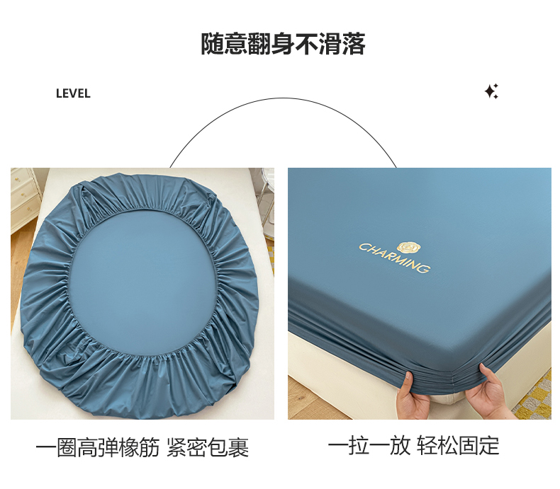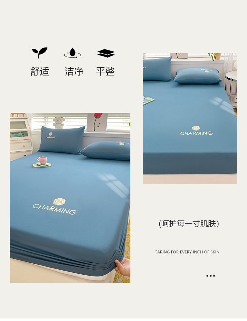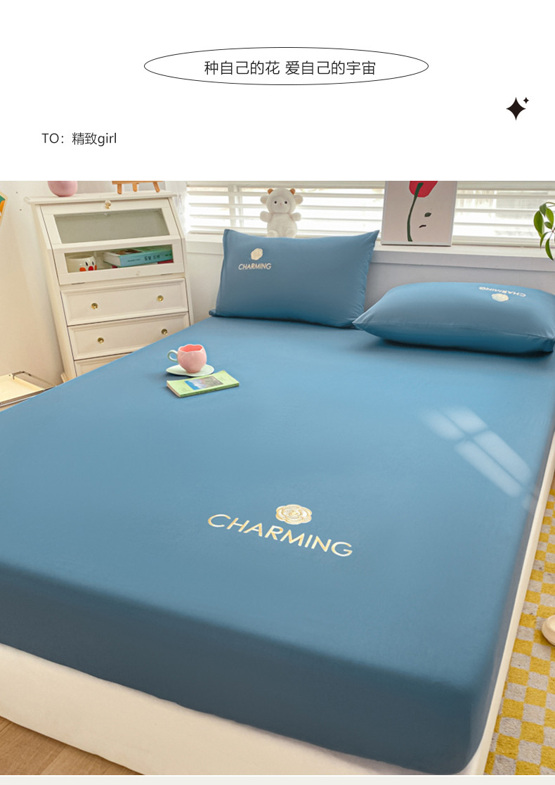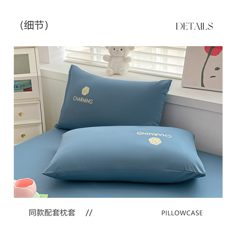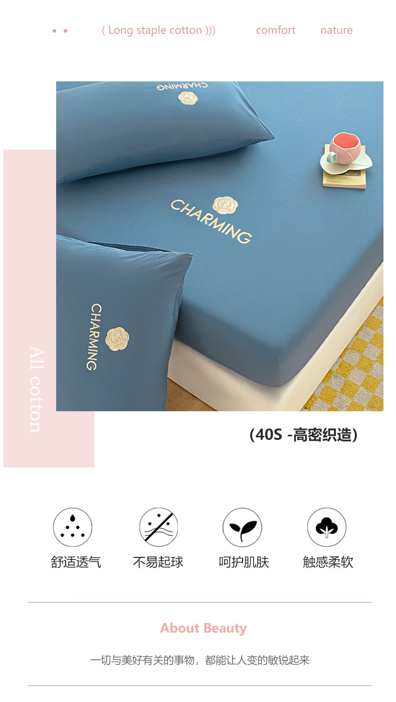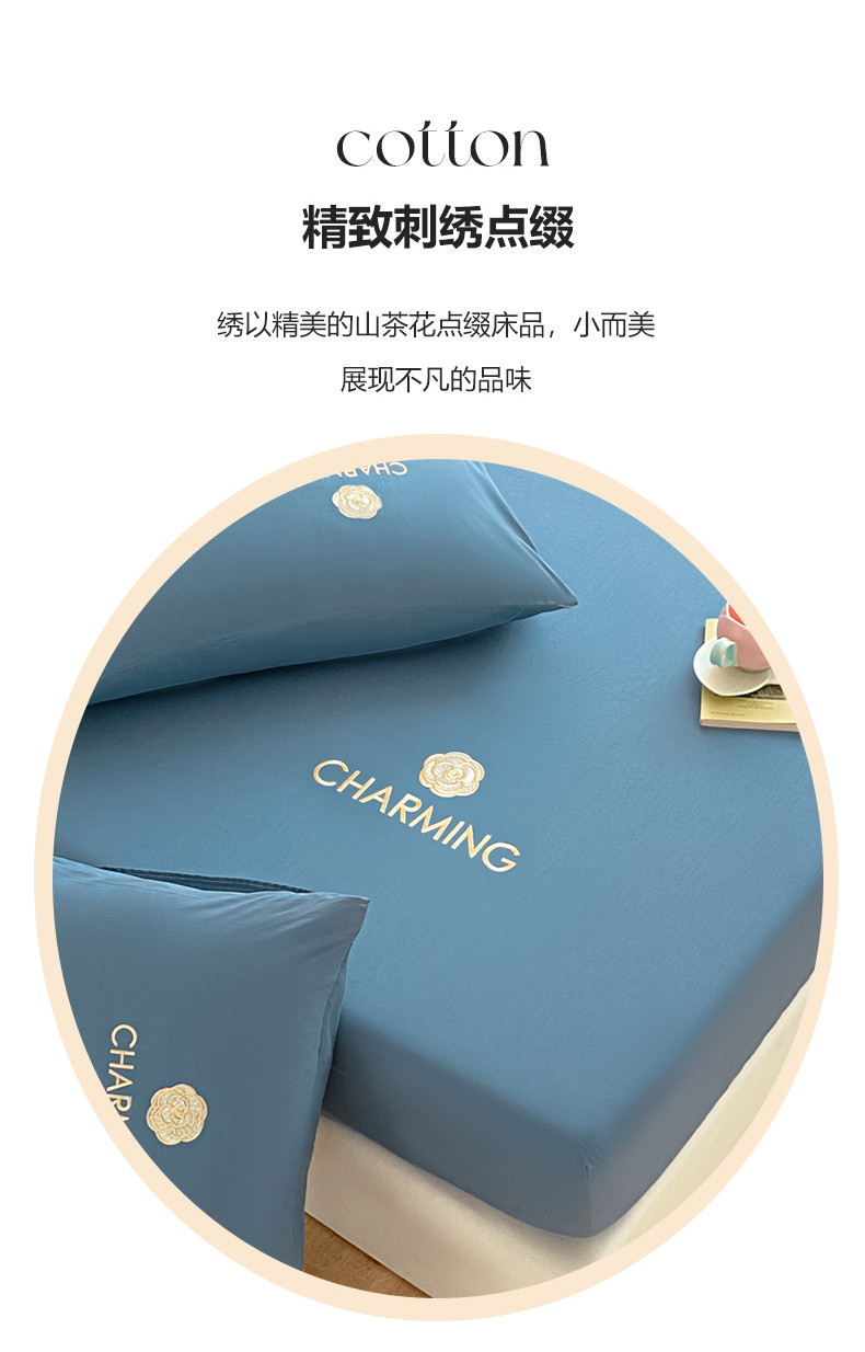 暖季 2025新款40长绒棉刺绣款单床笠山茶花系列 山茶花-宾利蓝