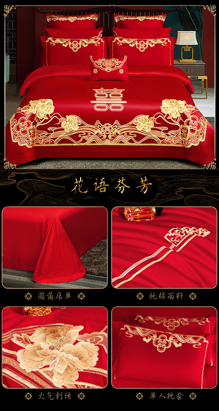 当前位置: 91家纺网 > 商品网购 > 床品套件 > 多件套 > 多件套 > 蒂爵 全棉纯棉原版重绣超大花绣花婚庆四件套多件套 花语芬芳