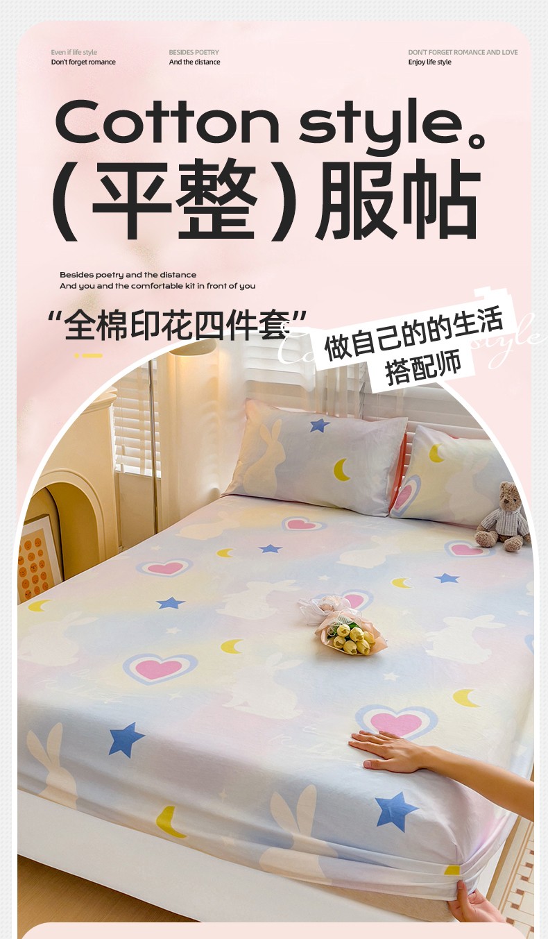 (总)名兮 2023新款全棉印花卡通风四件套,抱抱熊,波波熊,菲菲兔,机器小新,可爱萌宠,可爱兔
