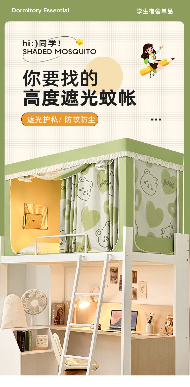 当前位置: 91家纺网 > 商品网购 > 床上用品 > 蚊帐 > 学生蚊帐 > 海虹新款学生蚊帐强遮光蚊帐+帘全涂银宿舍上下铺通用加厚单人 夏洛熊