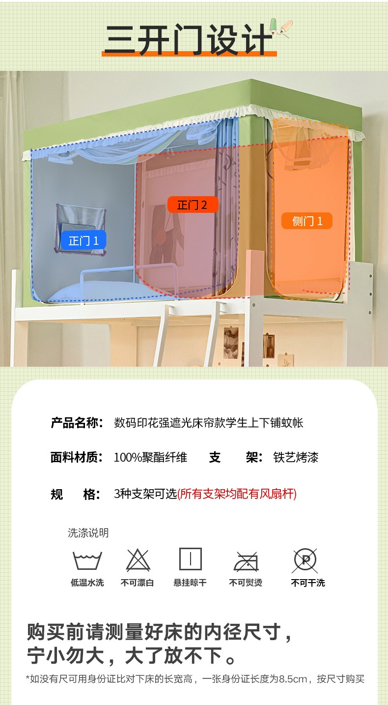 90*190*90三开门 上下铺通用 烤漆支架 | ¥90.00 |