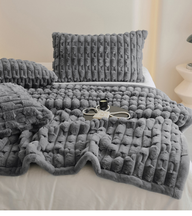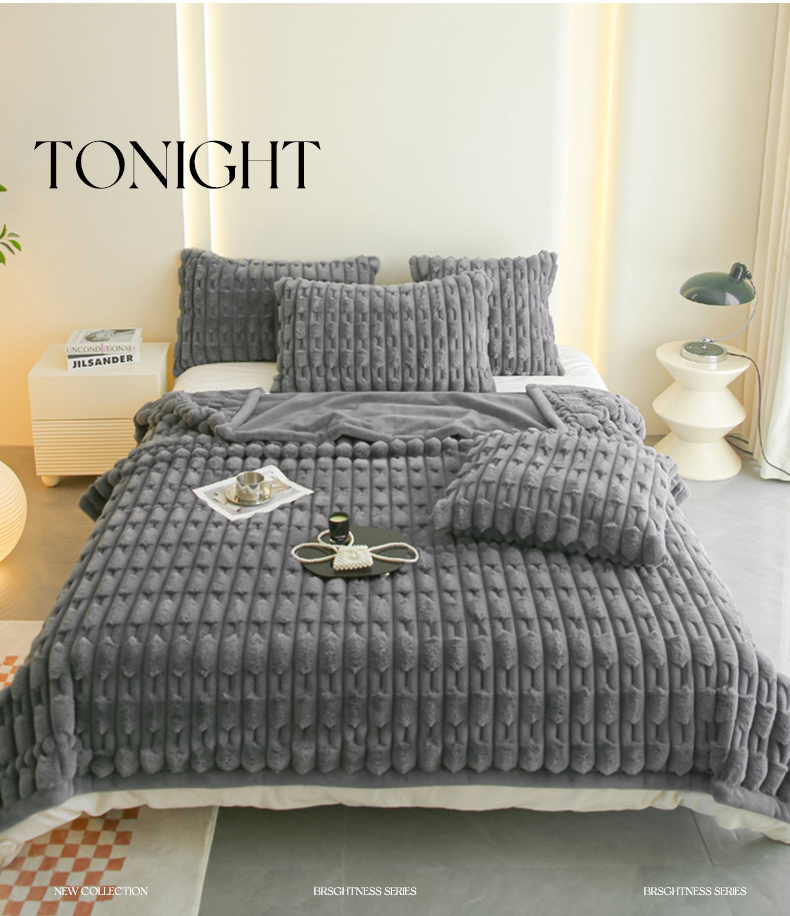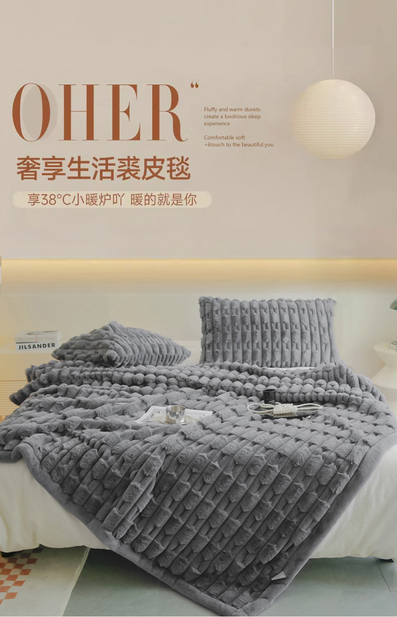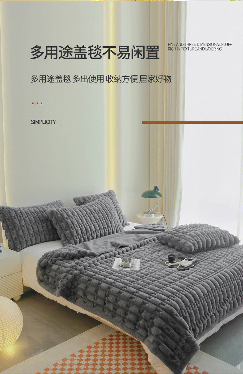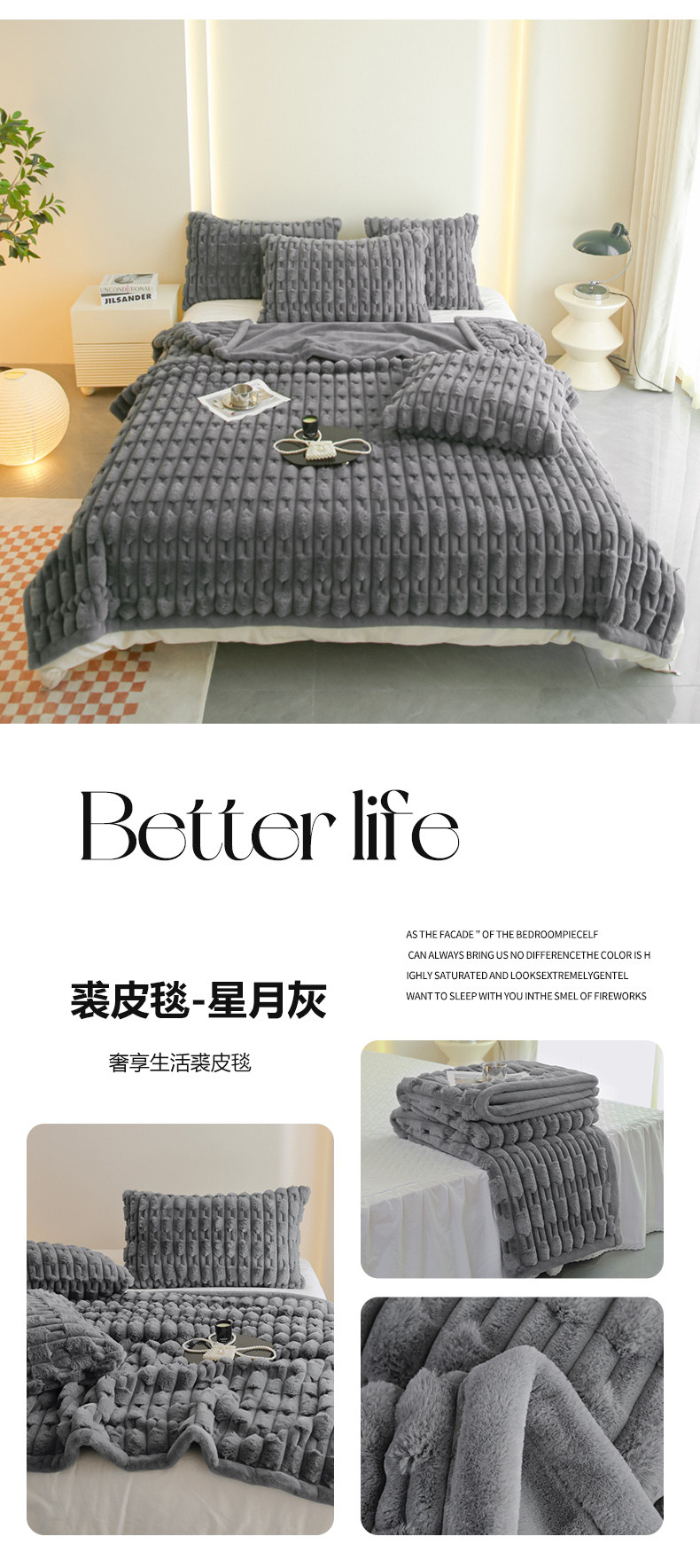 商品名称:尚品绵羊 2025秋冬新款双层加云毯毛毯直播爆款毯子 奢享生活-星月灰